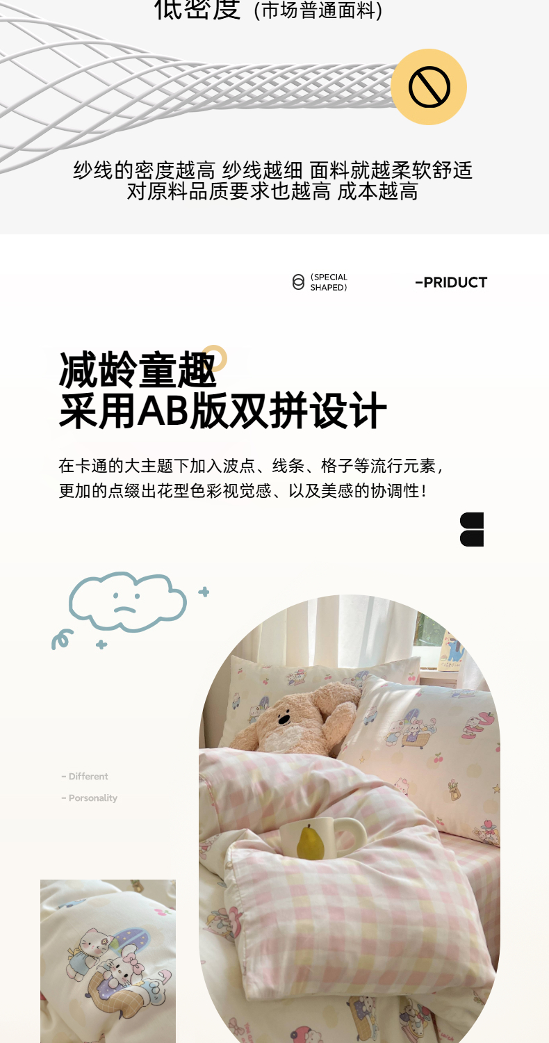 商品名称:(总)六巷胡同 2025新款INS卡通减龄可爱风全棉四件套(开学季系列)