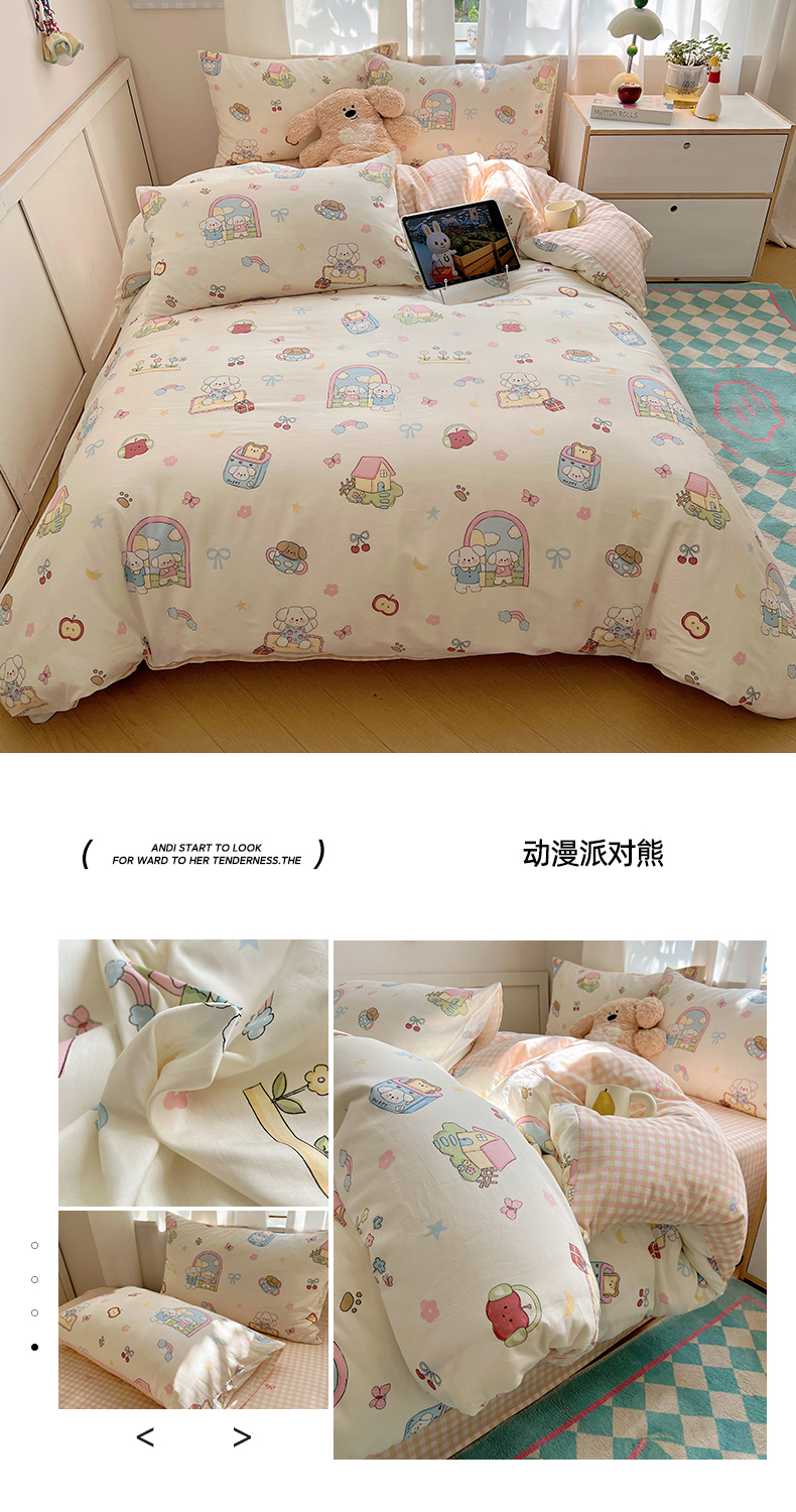 (总)六巷胡同 2025新款INS卡通减龄可爱风全棉四件套(开学季系列)