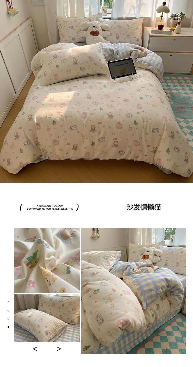 (总)六巷胡同 2025新款INS童趣可爱风卡通全棉四件套-第四系,彩虹甜筒猫,草莓害羞喵,粉格元气猫,咖格樱桃狗,蓝格嗨皮狗,圣诞麋鹿狗,仙人掌粉象,熊熊猫咪崽