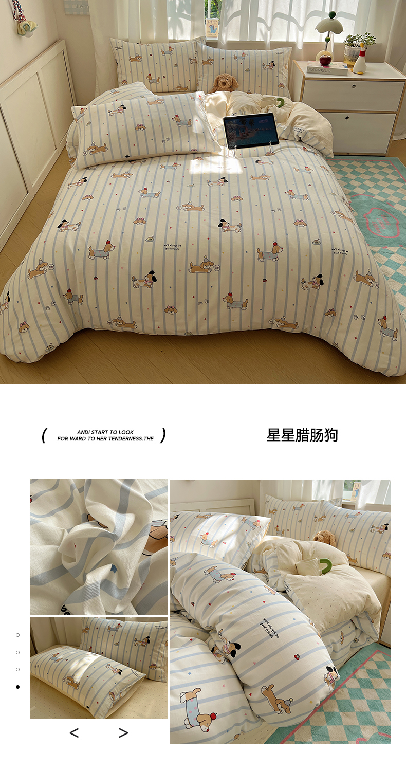 (总)六巷胡同 2025新款 INS减龄可爱风卡通全棉四件套第五系(森林音乐会系列),波点嘟嘟猫,点点面包犬,调皮蔷薇狗,哈喽泡芙猫,蓝格插画犬,森林音乐会