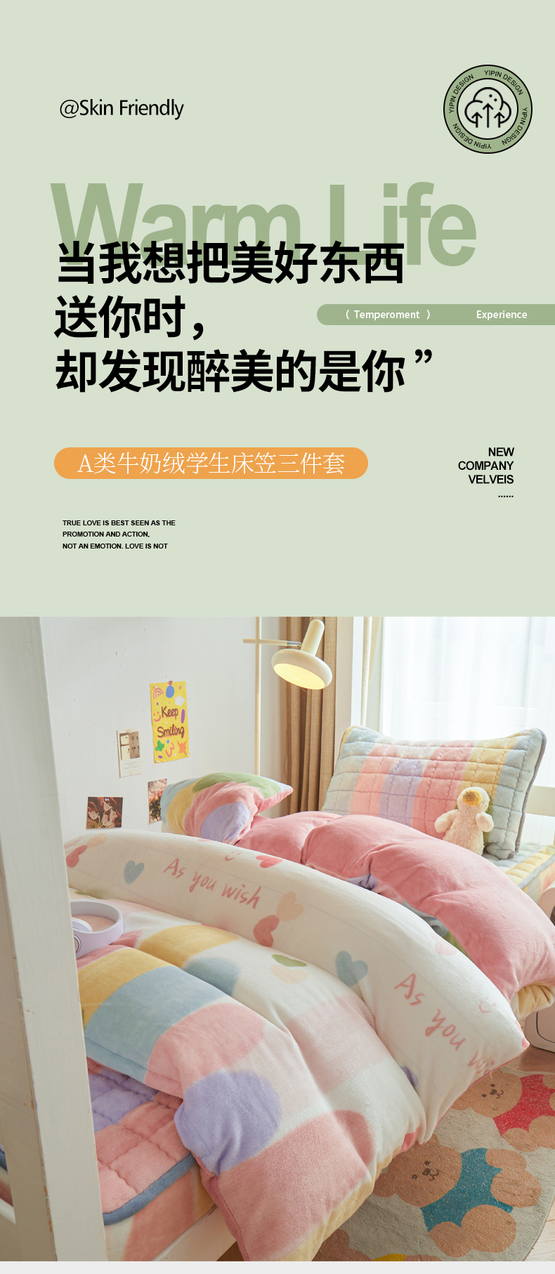 爱思凯家纺 2025新款初心-牛奶绒学生床笠小号三件套 【初心】床笠-爱心彩虹