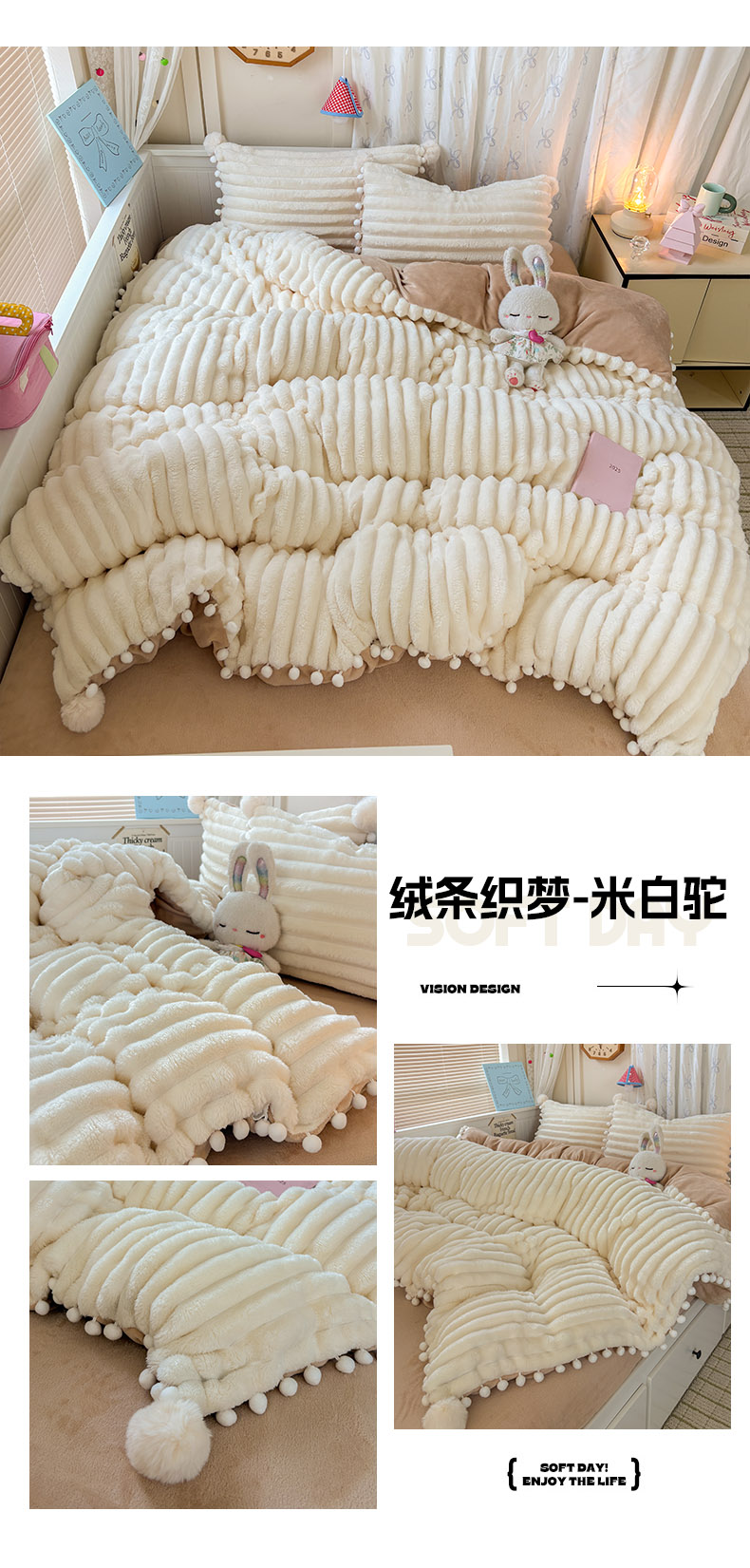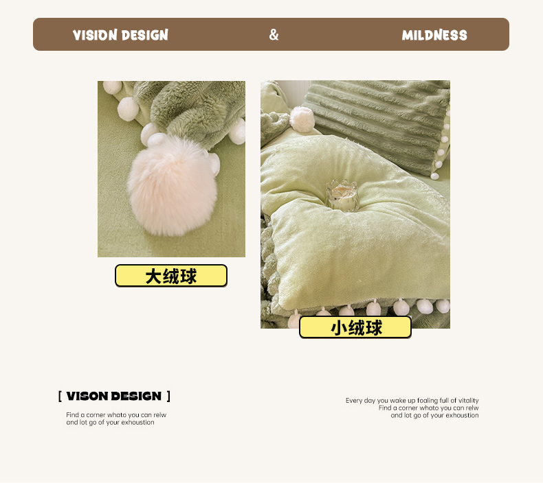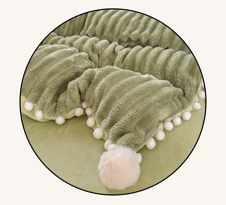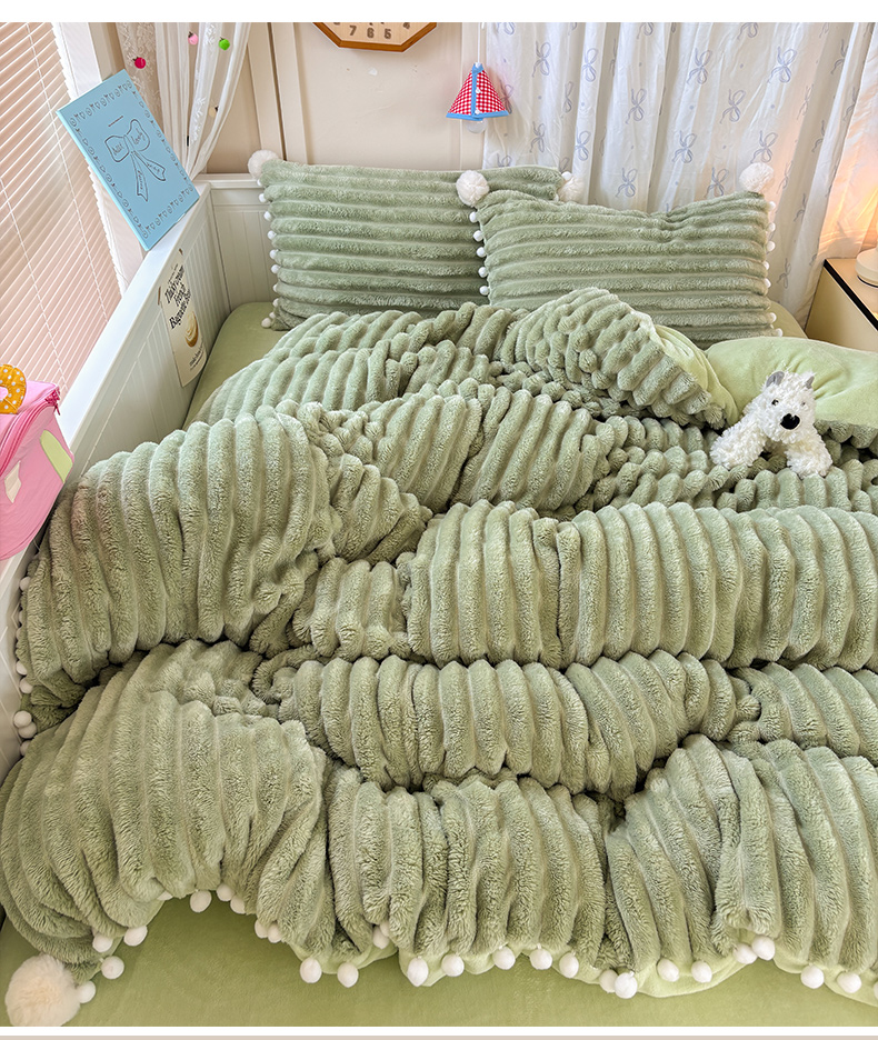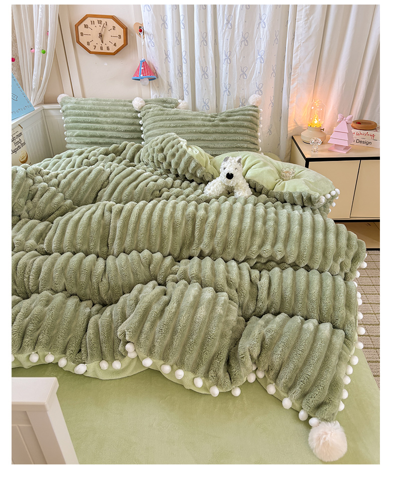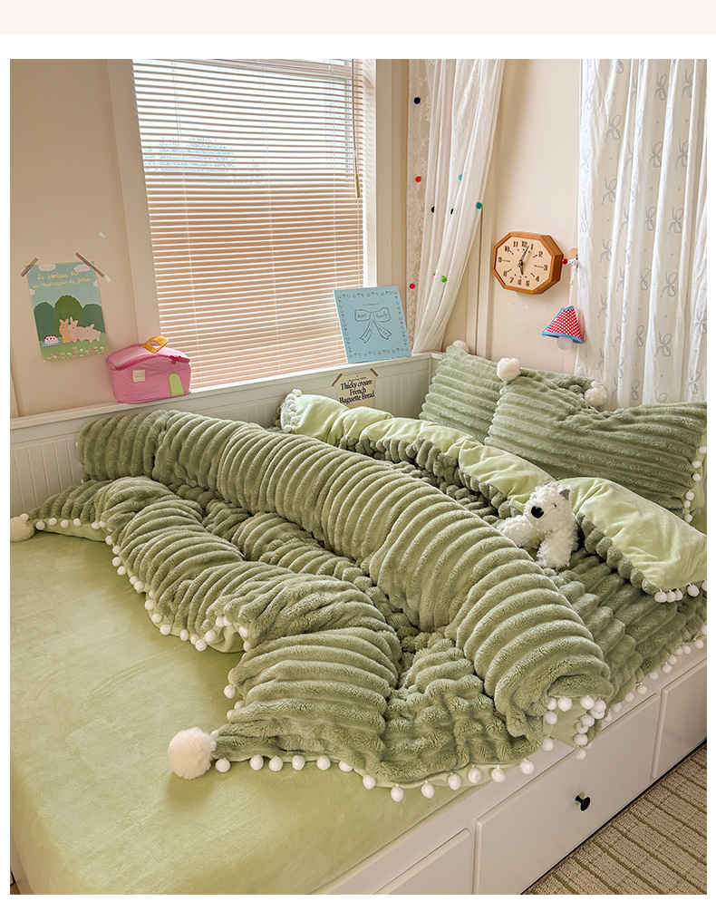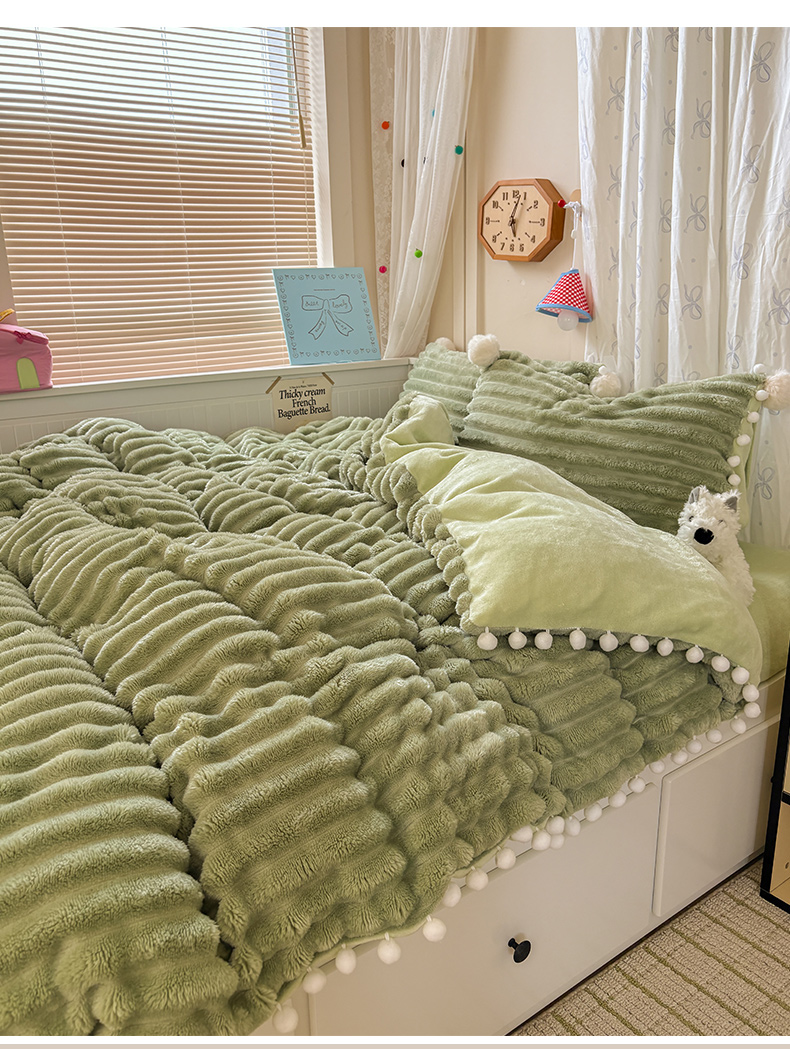 当前位置: 91家纺网 > 商品网购 > 床品套件 > 四件套 > 牛奶绒四件套 > 潮邦创意家居 2025新款宽条小球工艺款牛奶绒四件套-绒条织梦系列 绒条织梦-抹茶绿