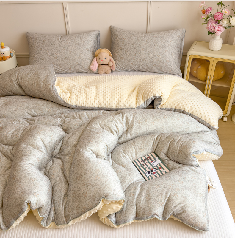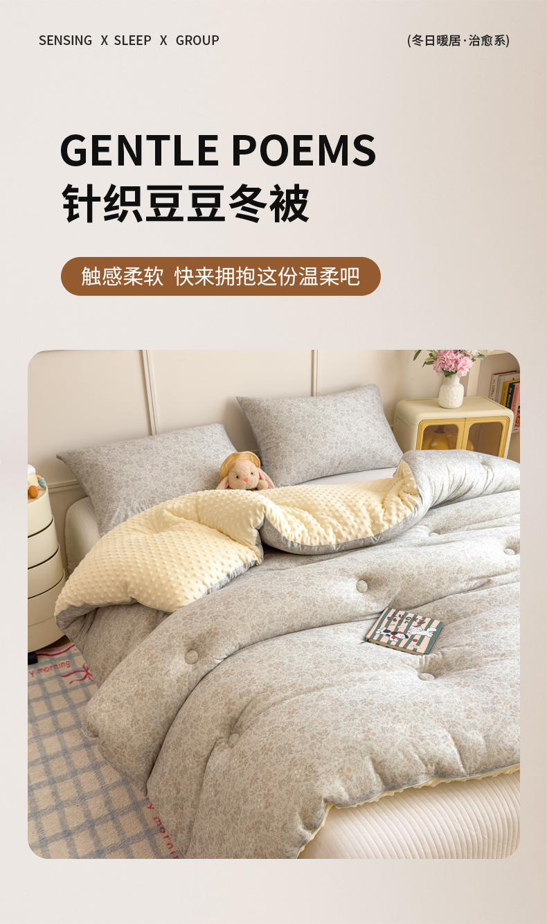 • 91家纺网 家纺一手货源 找家纺 米菲 2025新款针织豆豆冬被被子被芯 花海-灰