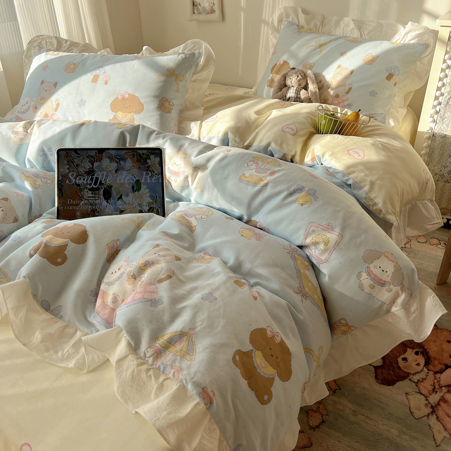(总)六巷胡同 2025新款韩式INS卡通减龄花边款全棉四件套(第三系),花边波点嘟嘟猫,花边点点面包犬,花边调皮蔷薇狗,花边法棍滑板狗,花边粉格元气猫,花边哈喽泡芙猫,花边蓝格邦尼熊,花边蓝格插画犬,花边泡芙萌趣狗,花边森林音乐会,花边仙人掌粉象,花边熊熊猫咪崽,花边郁金香狗狗