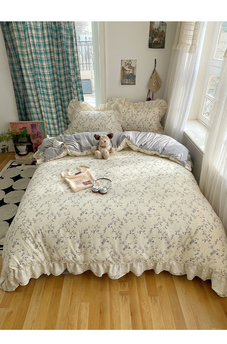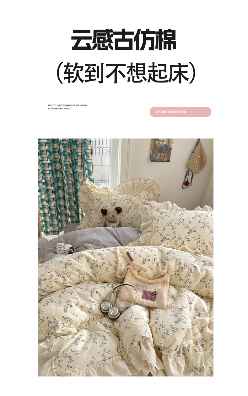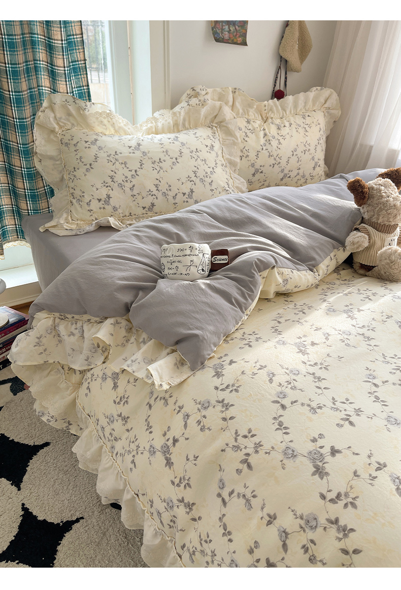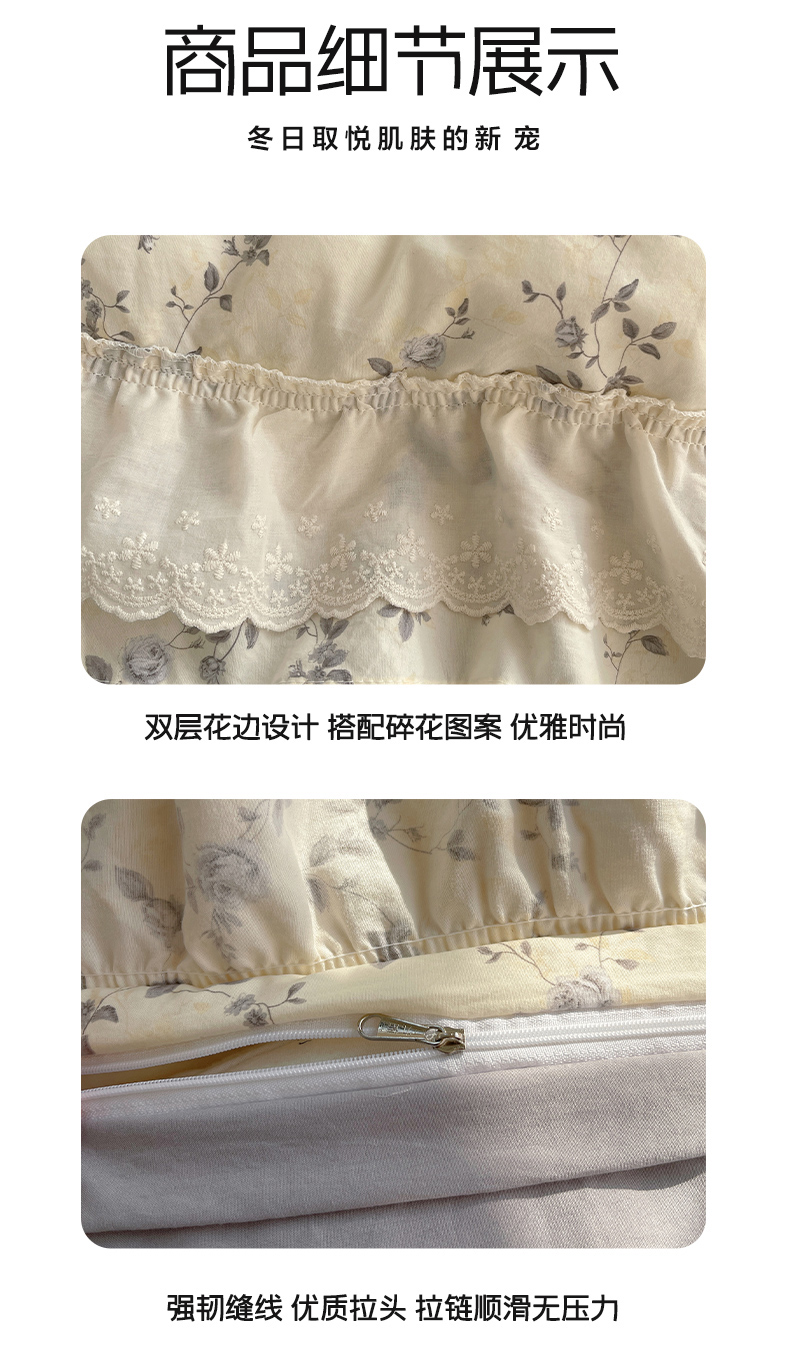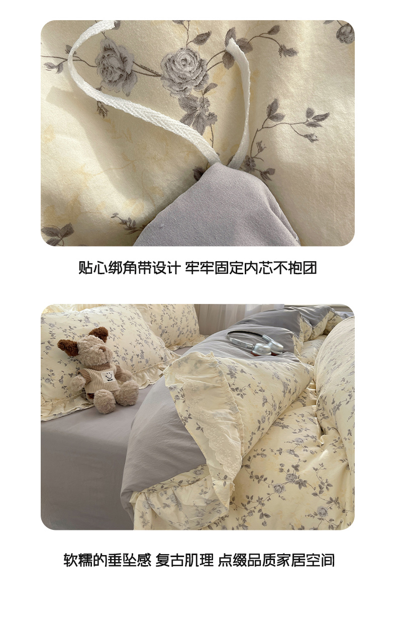 当前位置: 91家纺网 > 商品网购 > 床品套件 > 四件套 > 其它四件套 > 韩都家居 2026春夏新款古法仿棉蕾丝花边四件套 雾里蔷薇
