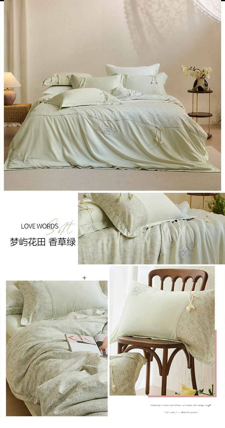 商品名称:诗黛尔 2026春夏新款云朵棉梦屿花田系列四件套 梦屿花田-香草绿