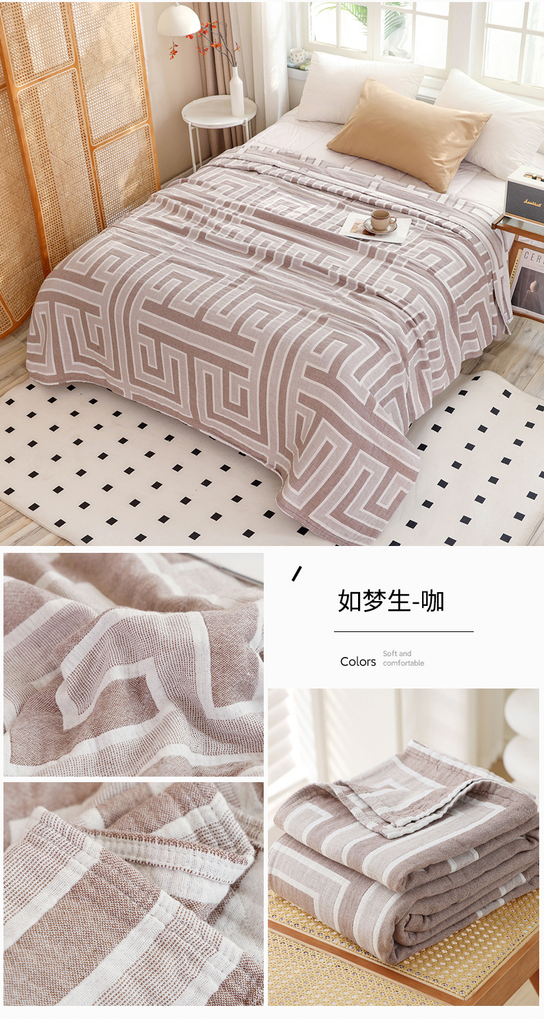 商品名称:朴尔家纺-毛巾被 2026新款伯尔尼风格全棉加厚三层纱布毛巾被-朴尔经典款常年备货 竹满庭院-咖