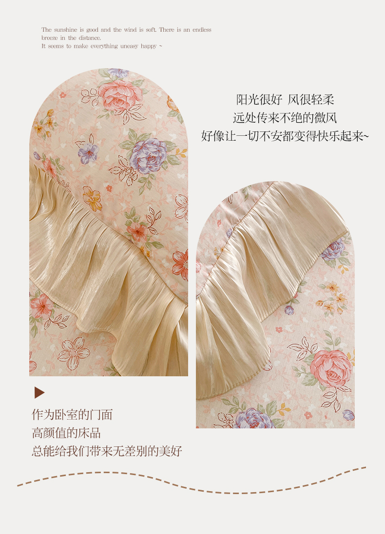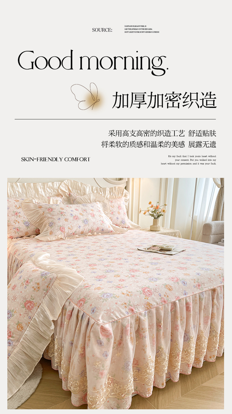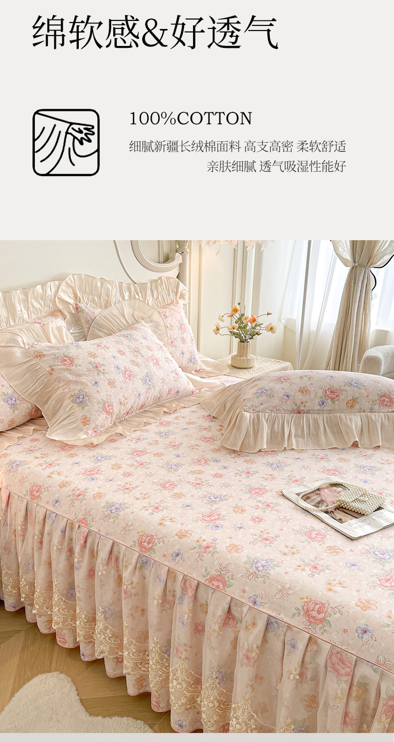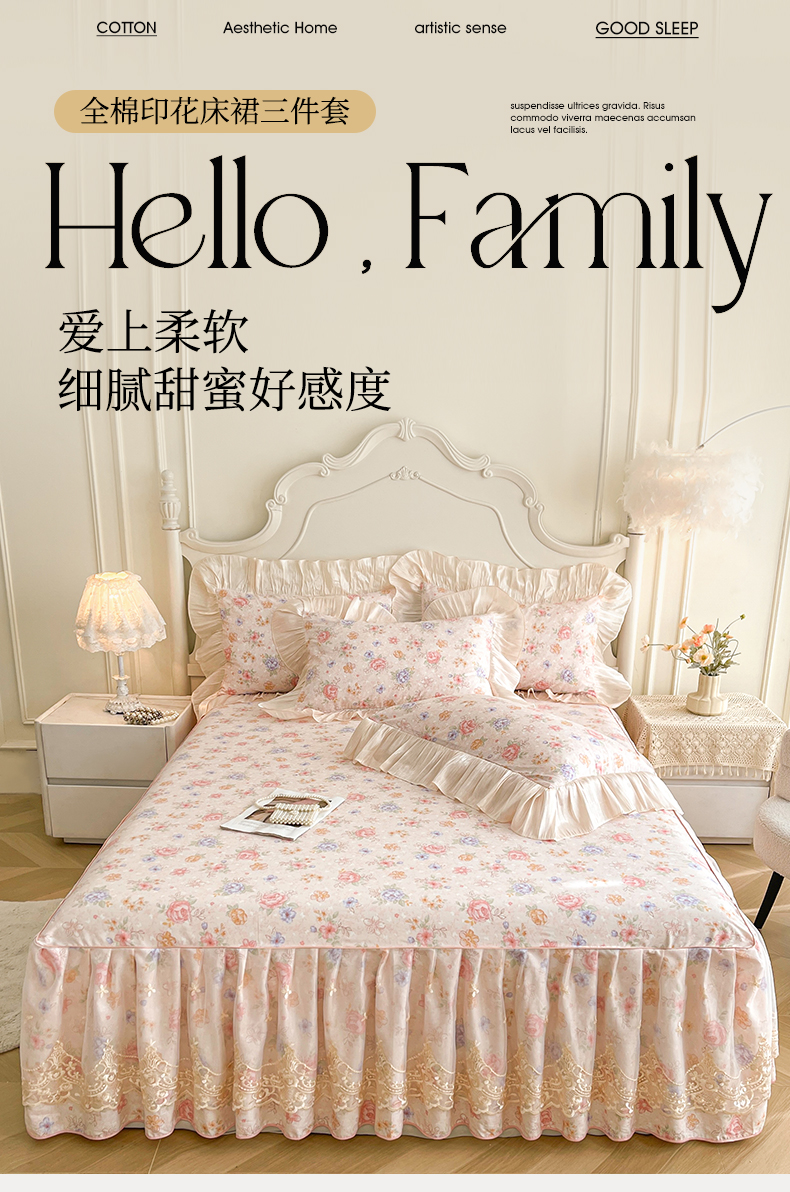 当前位置: 91家纺网 > 商品网购 > 床品套件 > 三件套 > 宜凡家纺 2026新款全棉印花床裙款三件套 寻觅花季