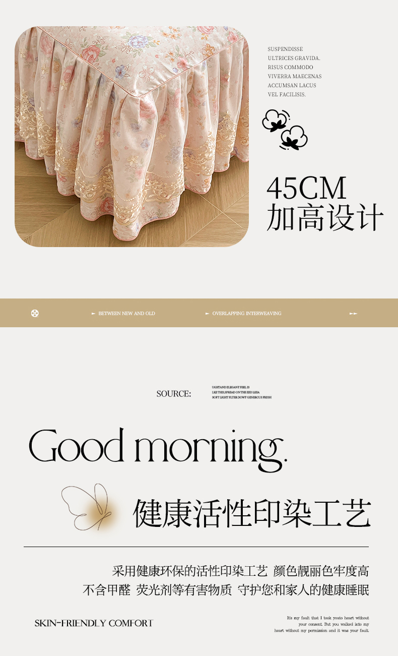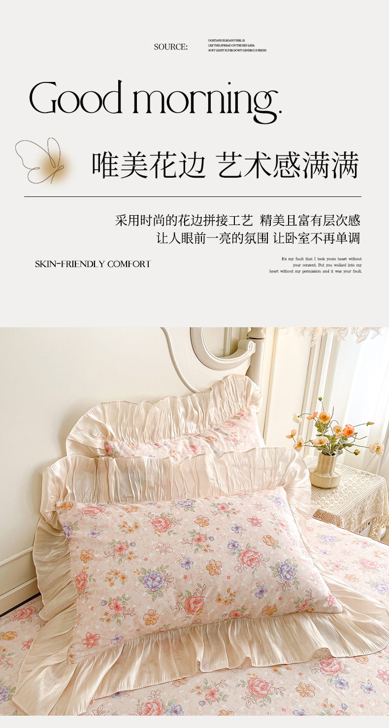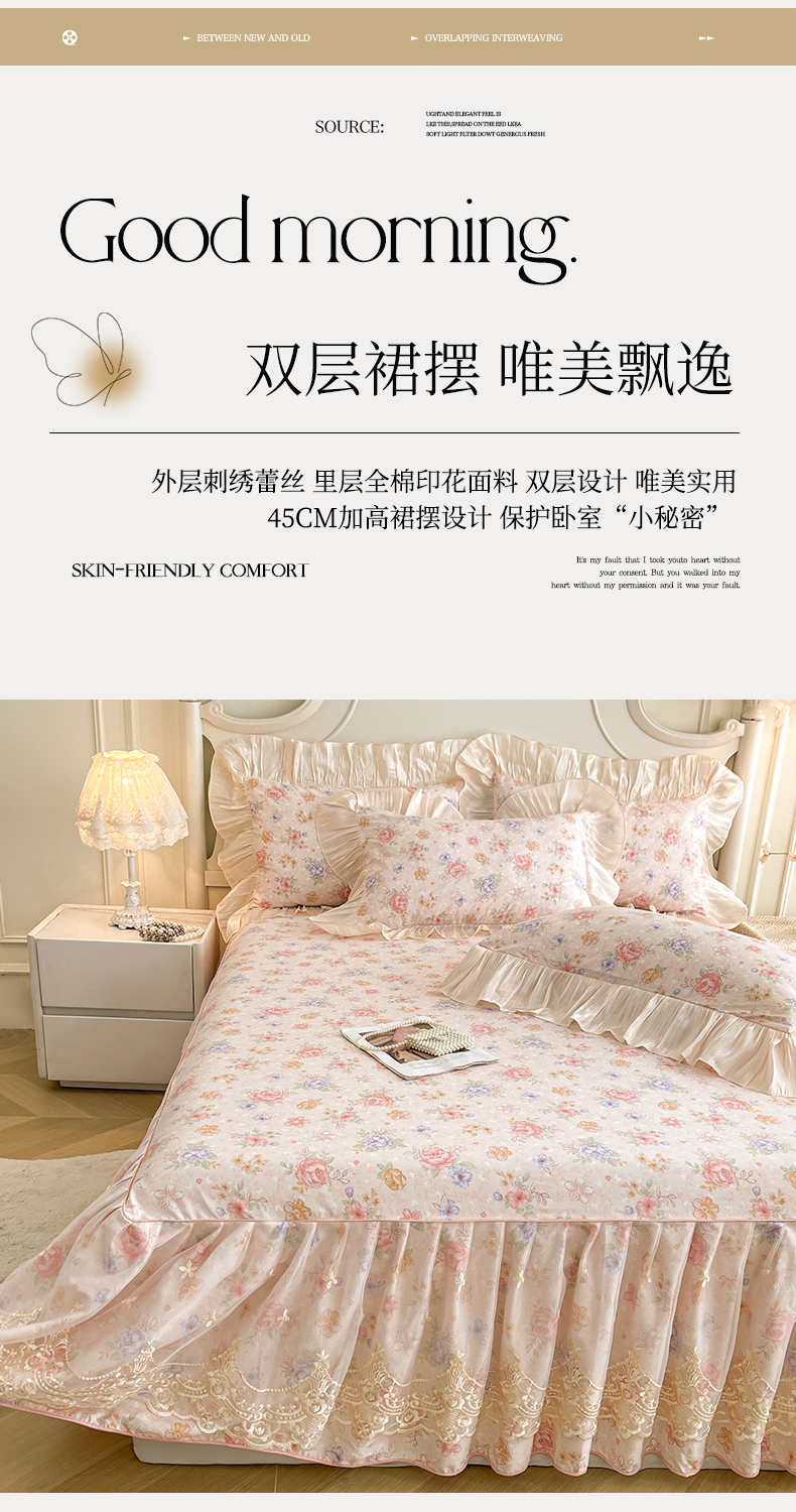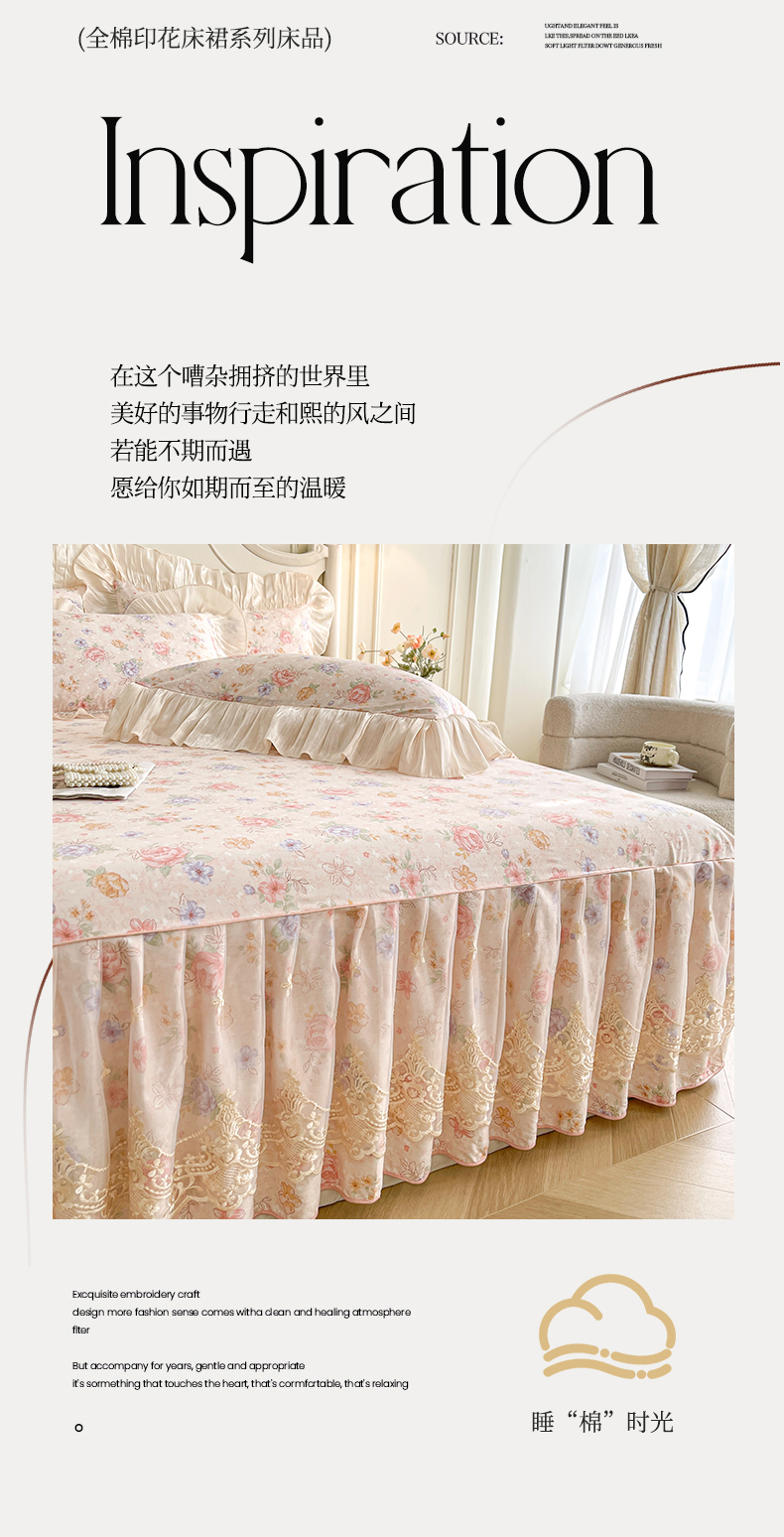 当前位置: 91家纺网 > 商品网购 > 床品套件 > 三件套 > 宜凡家纺 2026新款全棉印花床裙款三件套 寻觅花季