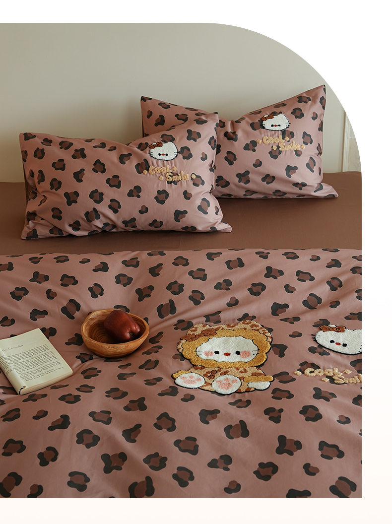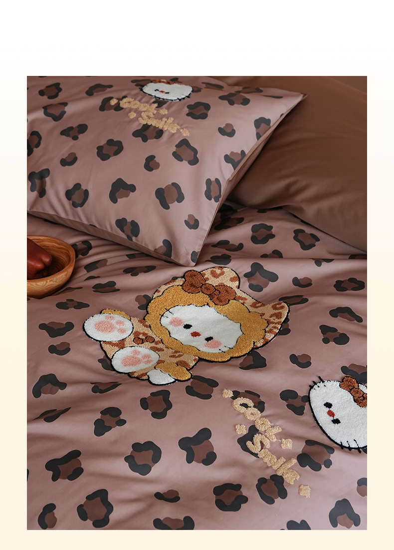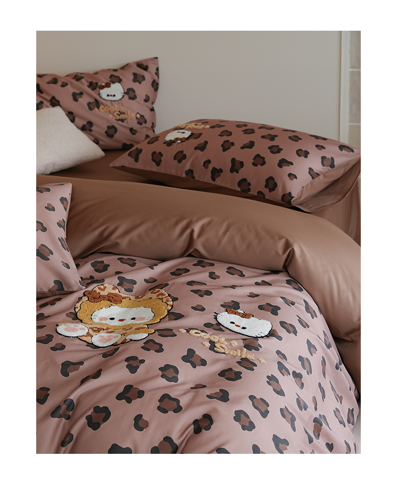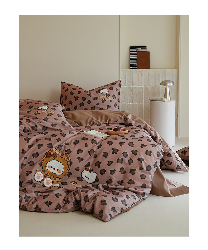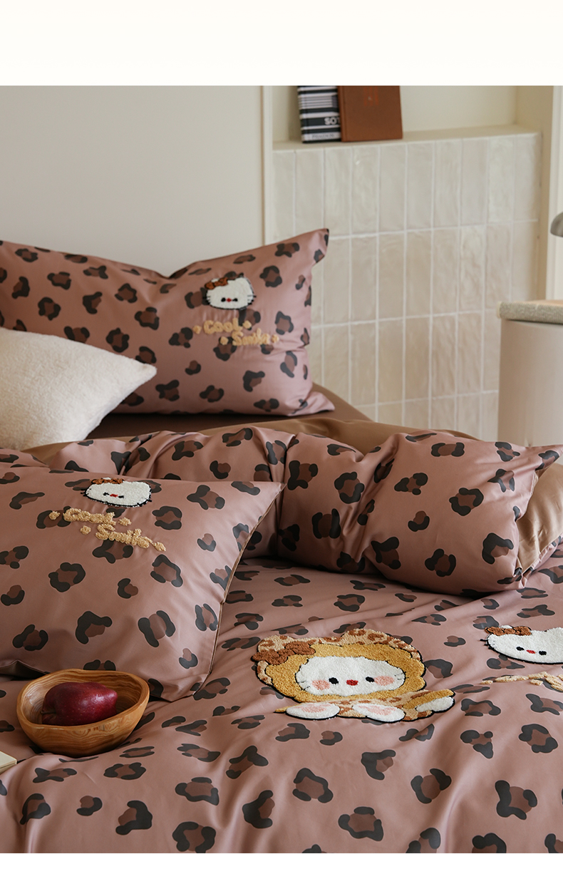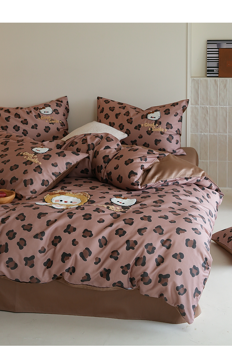 商品名称:雅居纺家纺 2026新款50长绒棉豹纹绣花四件套 咖啡豹纹