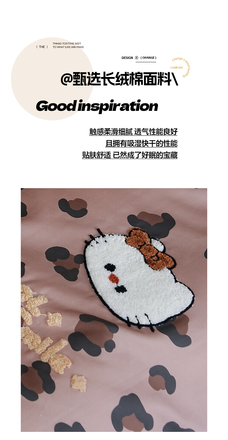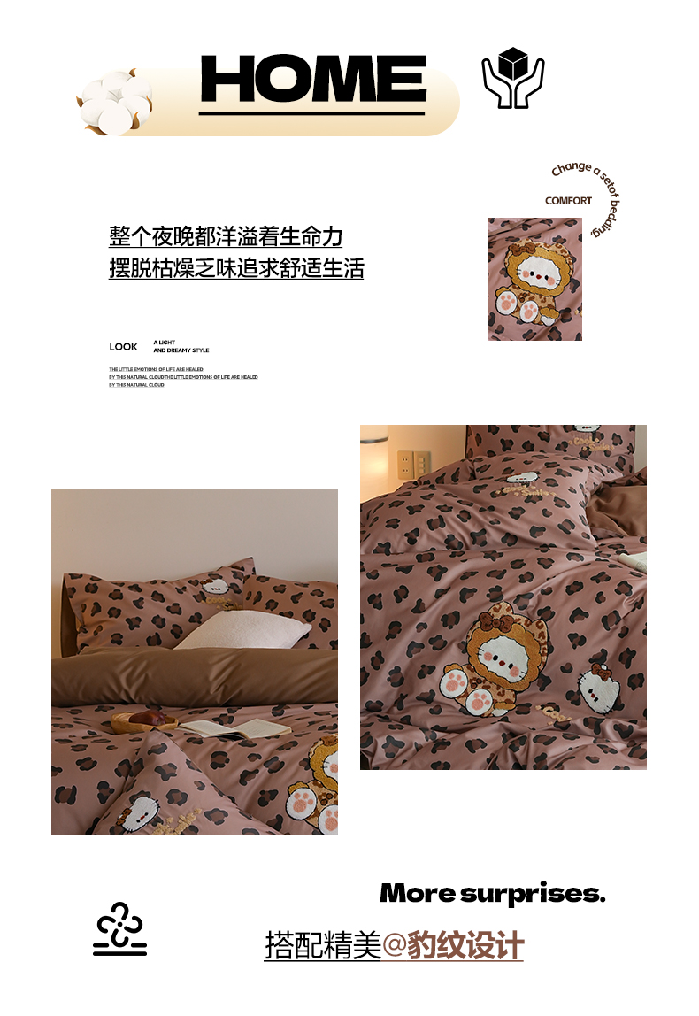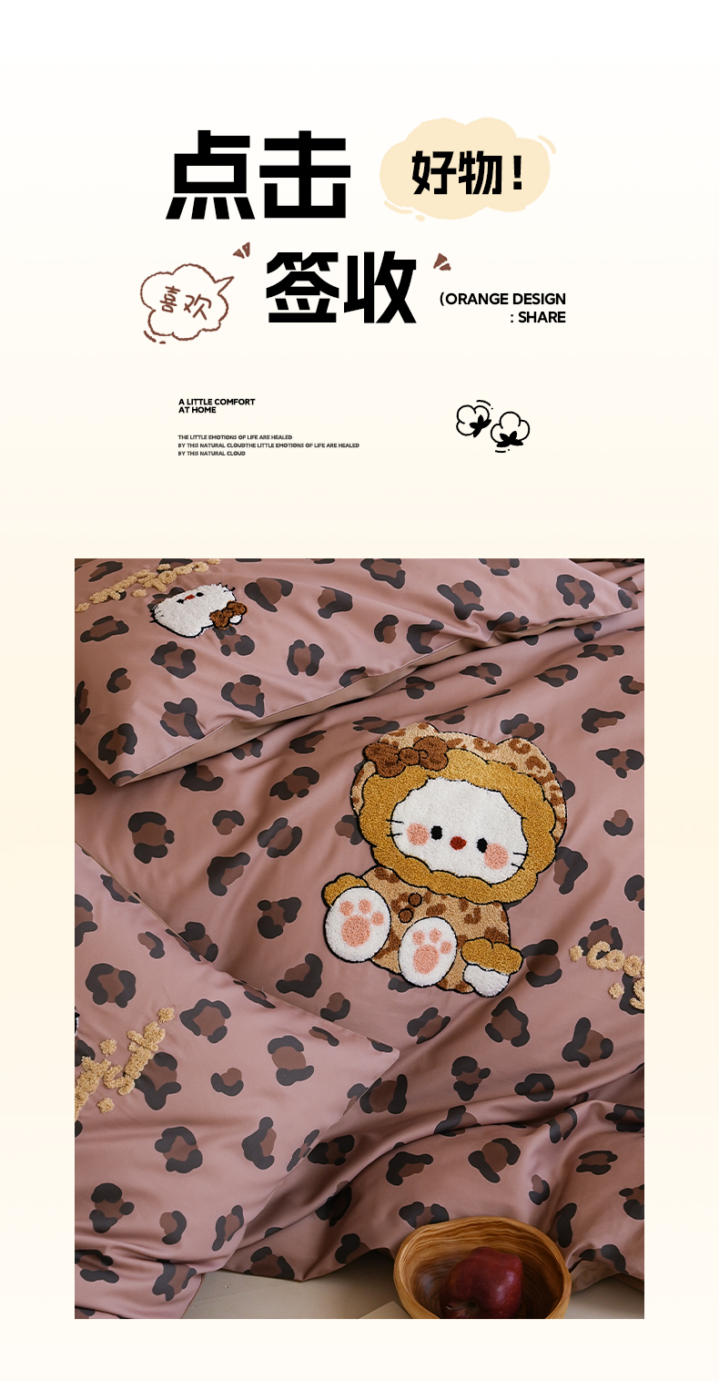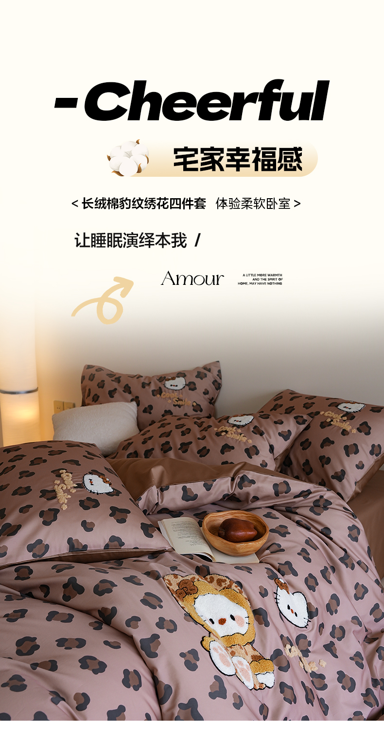 商品名称:雅居纺家纺 2026新款50长绒棉豹纹绣花四件套 咖啡豹纹
