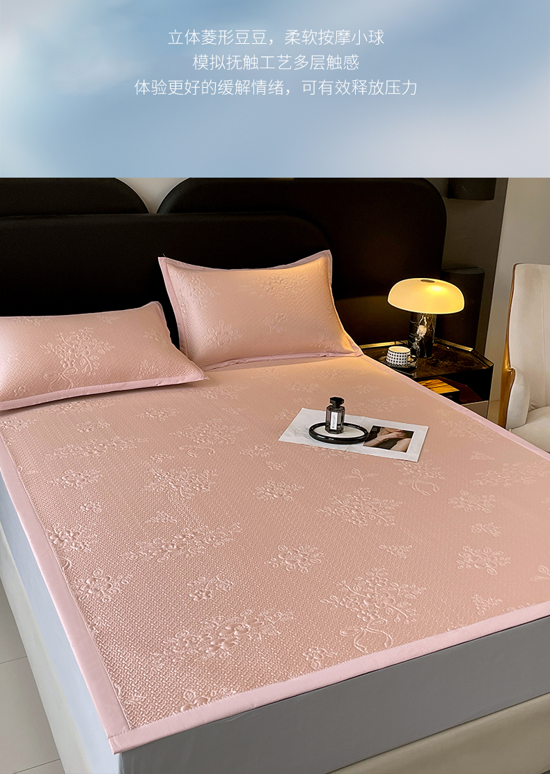 (总)春皖家纺 2026新款提花浮雕冰豆豆凉感席三件套-浅夏花结