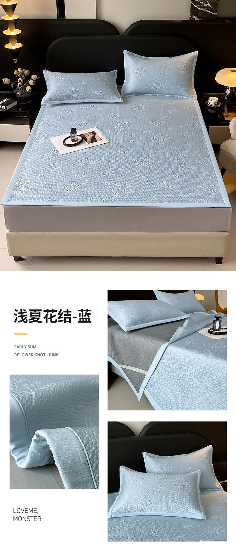 商品名称:(总)春皖家纺 2026新款提花浮雕冰豆豆凉感席三件套-浅夏花结