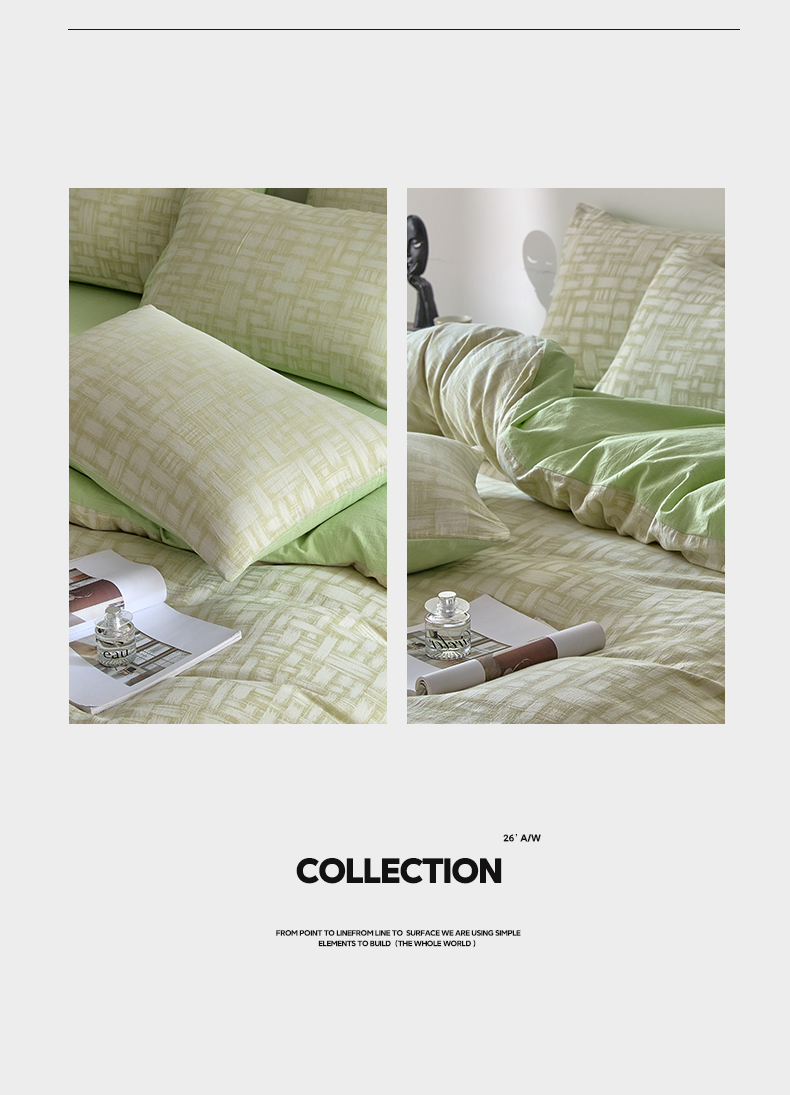 (总)如一 2026新款色织提花全棉水洗棉四件套第一批,叶笙-绿,叶笙-咖,兰序-绿,叶笙-粉,兰序-紫,兰序-蓝,兰序-咖