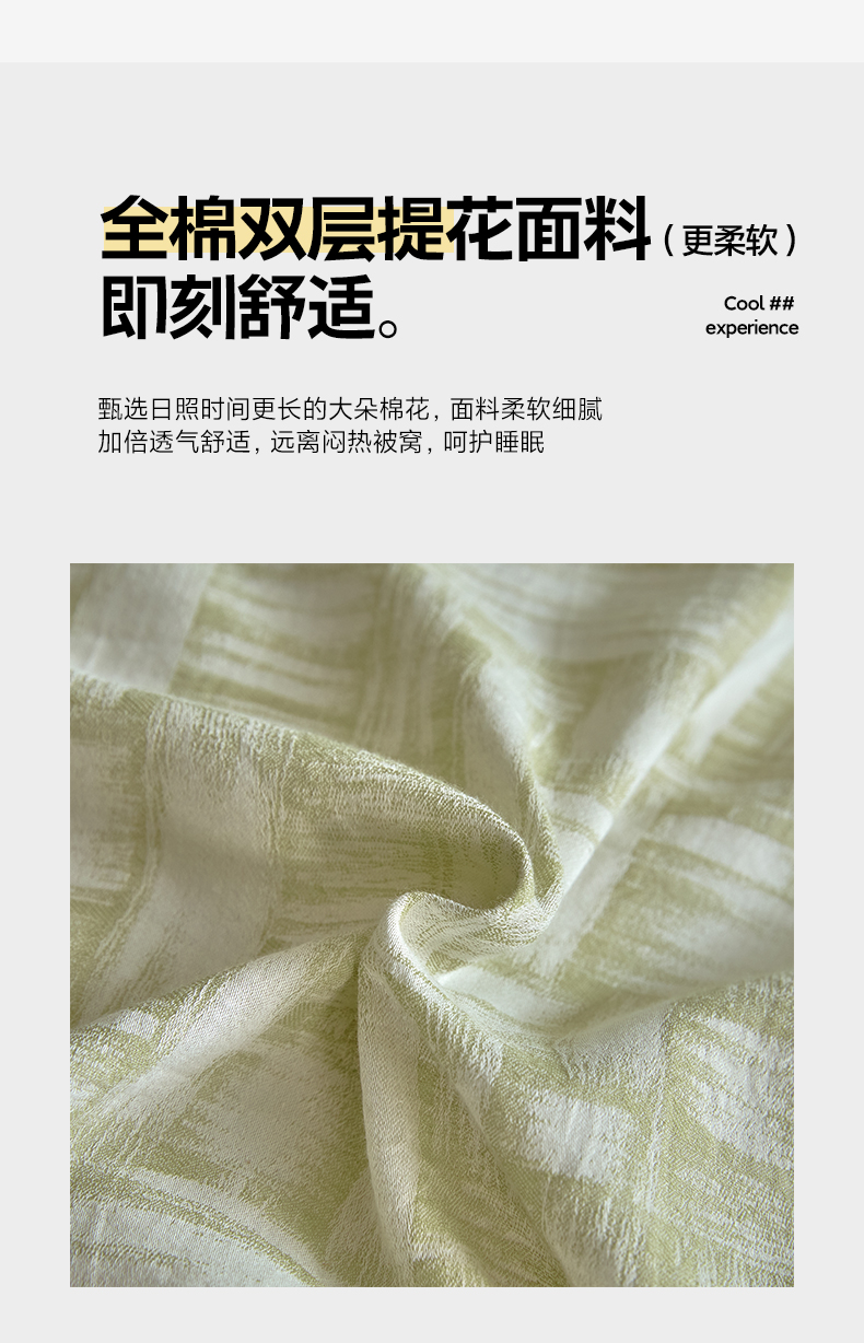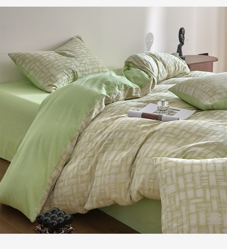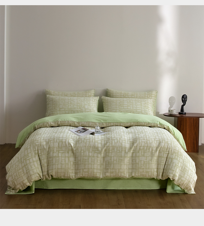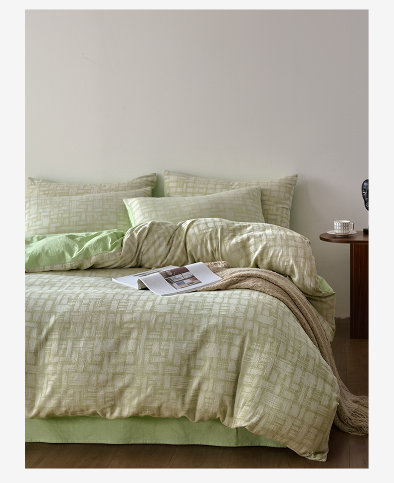 商品名称:如一 2026新款A类色织提花全棉双层纱水洗棉四件套 浮光绿