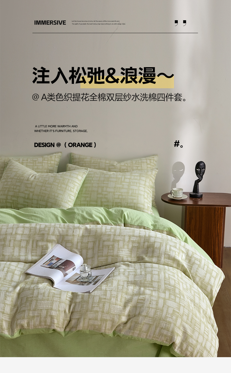 (总)如一 2026新款A类色织提花全棉双层纱水洗棉四件套,序章蓝,序章粉,序章绿,蝶漫粉,蝶漫灰,蝶漫咖,蝶漫绿,浮光粉,浮光灰,浮光咖,浮光绿,花忆粉,花忆灰,花忆绿,骏影黑,骏影蓝,骏影绿,兰序咖,兰序蓝,兰序绿,兰序紫,叶笙粉,叶笙咖,叶笙绿