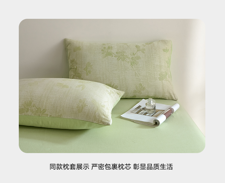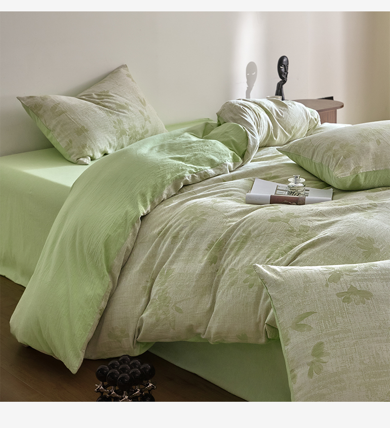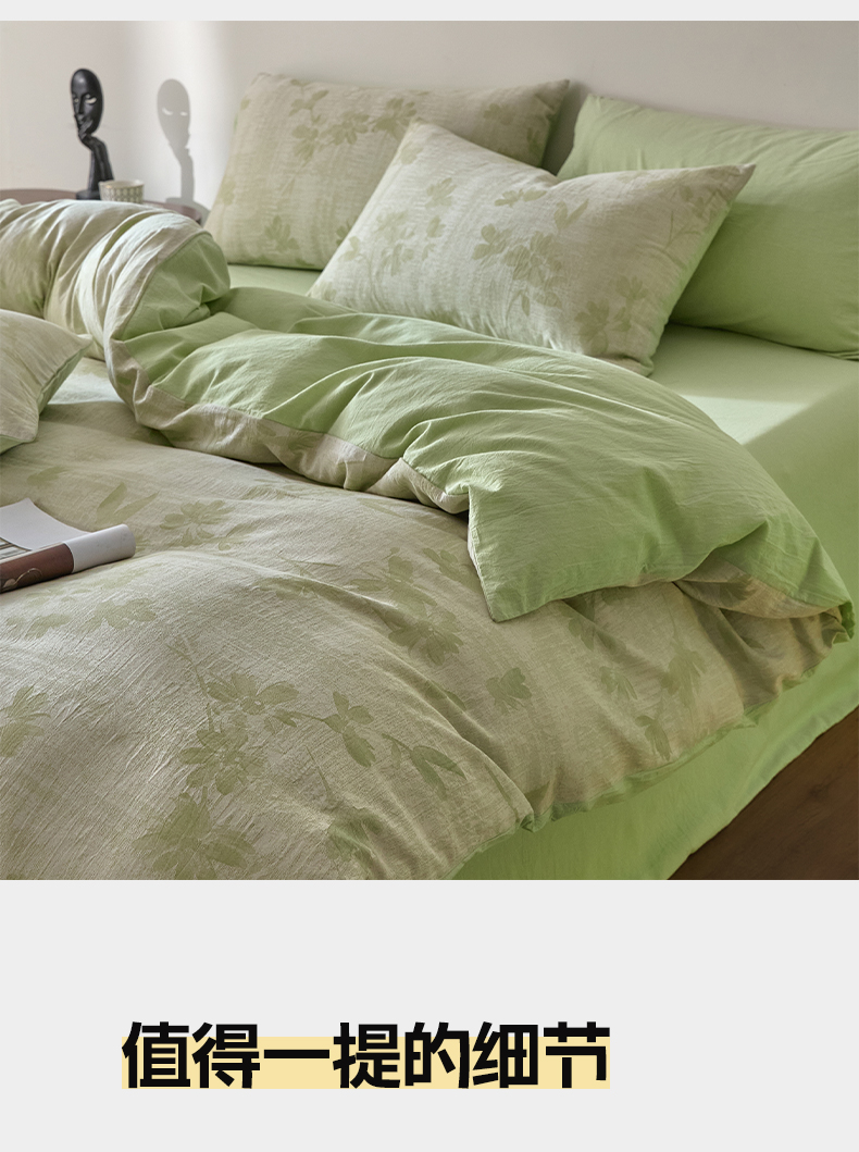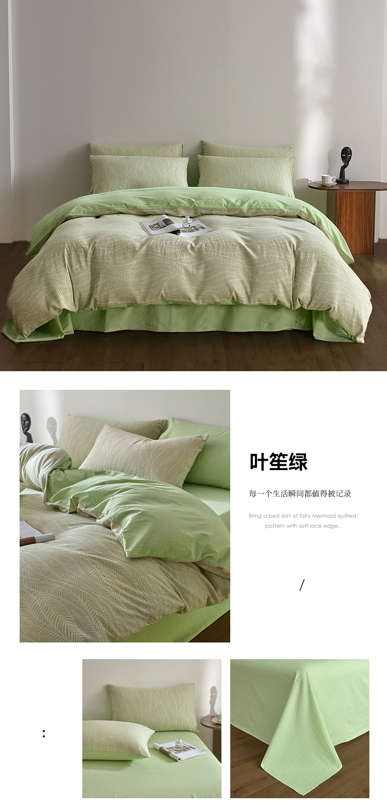 商品名称:如一 2026新款A类色织提花全棉双层纱水洗棉四件套 兰序绿