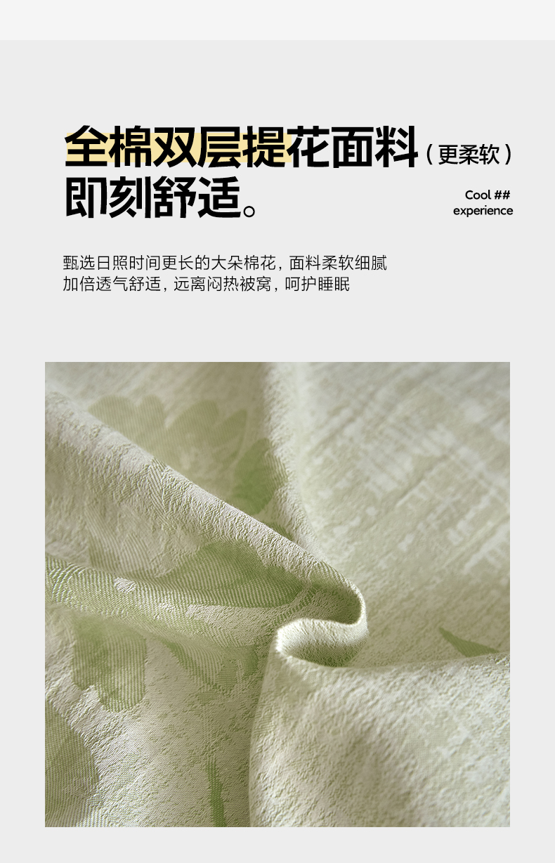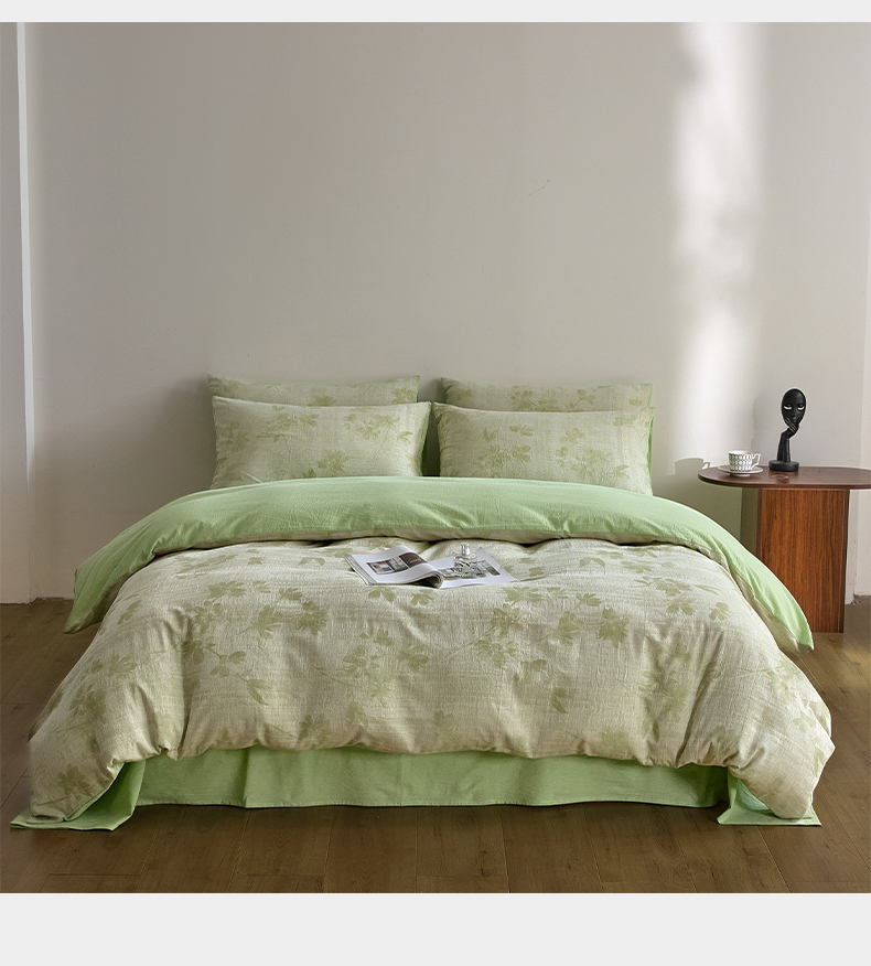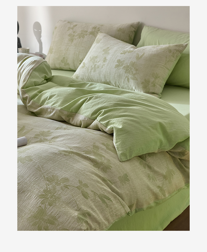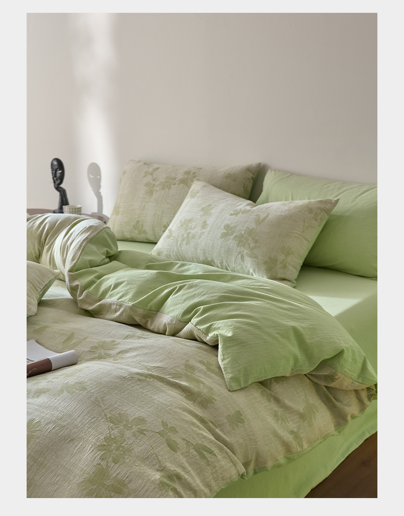 商品名称:如一 2026新款A类色织提花全棉双层纱水洗棉四件套 兰序绿