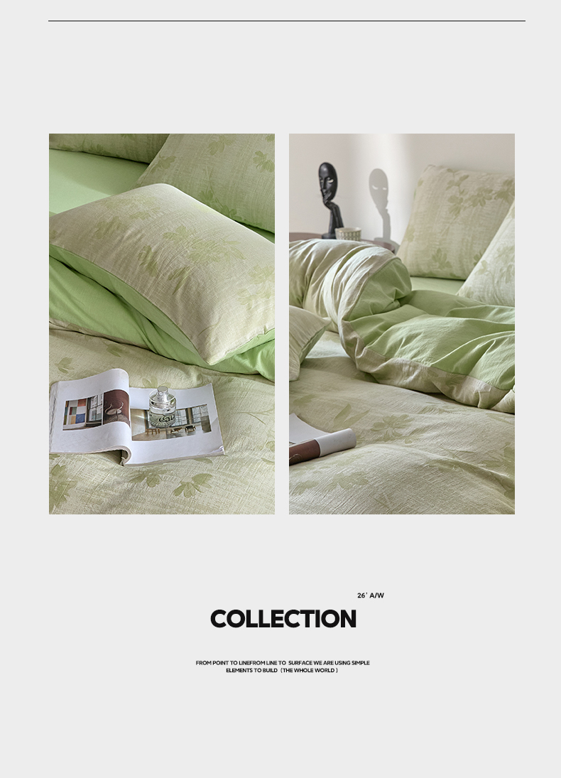 (总)如一 2026新款色织提花全棉水洗棉四件套第一批,叶笙-绿,叶笙-咖,兰序-绿,叶笙-粉,兰序-紫,兰序-蓝,兰序-咖