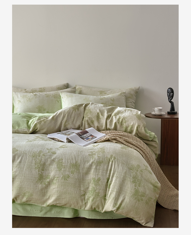 (总)如一 2026新款A类复古全棉棉麻印花四件套-第二批,浮绘,花叙,觅影,墨染,叶蓝,叶绿