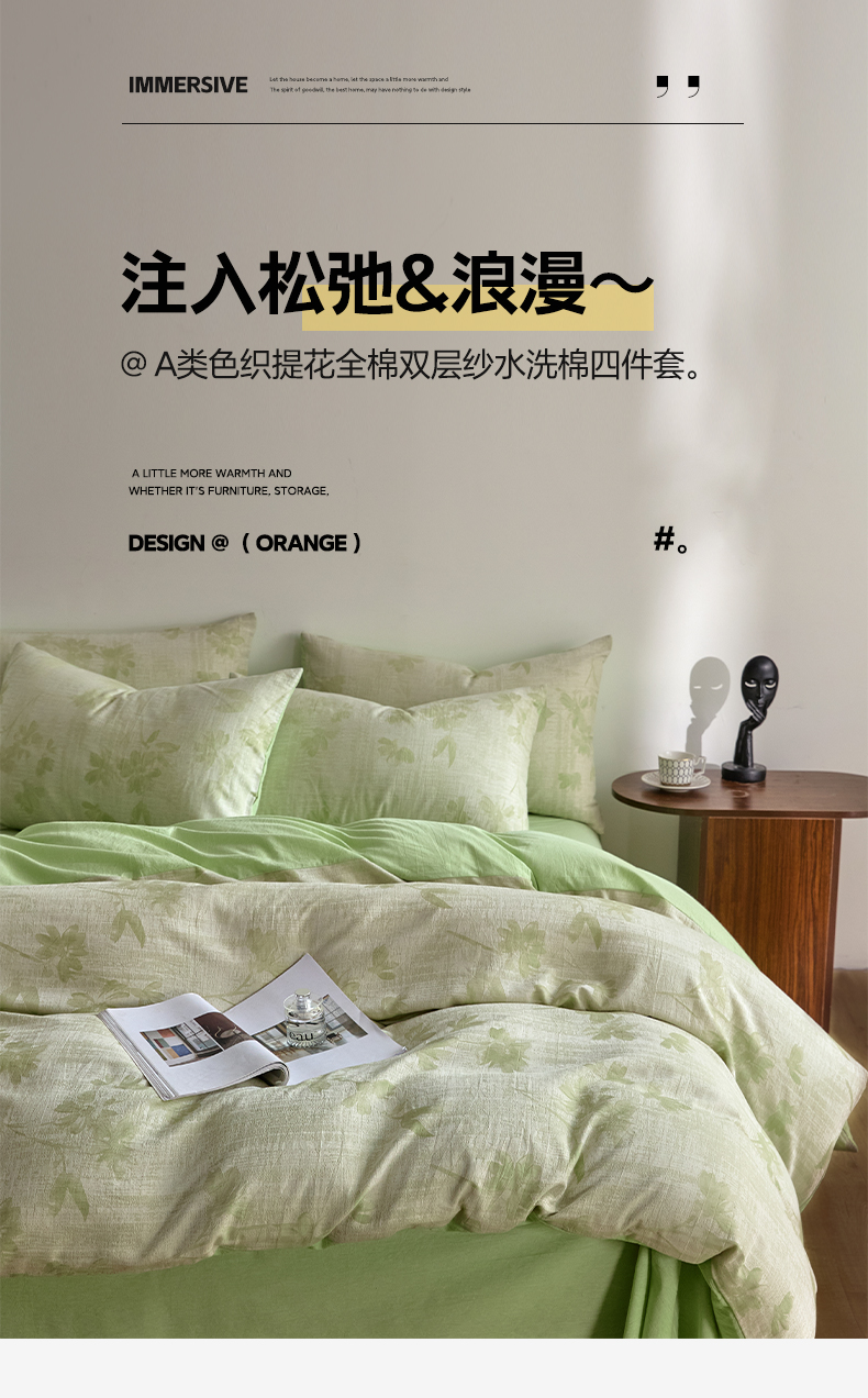 (总)如一 2026新款A类色织提花全棉双层纱水洗棉四件套,序章蓝,序章粉,序章绿,蝶漫粉,蝶漫灰,蝶漫咖,蝶漫绿,浮光粉,浮光灰,浮光咖,浮光绿,花忆粉,花忆灰,花忆绿,骏影黑,骏影蓝,骏影绿,兰序咖,兰序蓝,兰序绿,兰序紫,叶笙粉,叶笙咖,叶笙绿