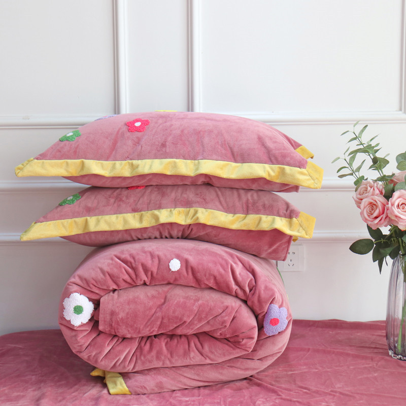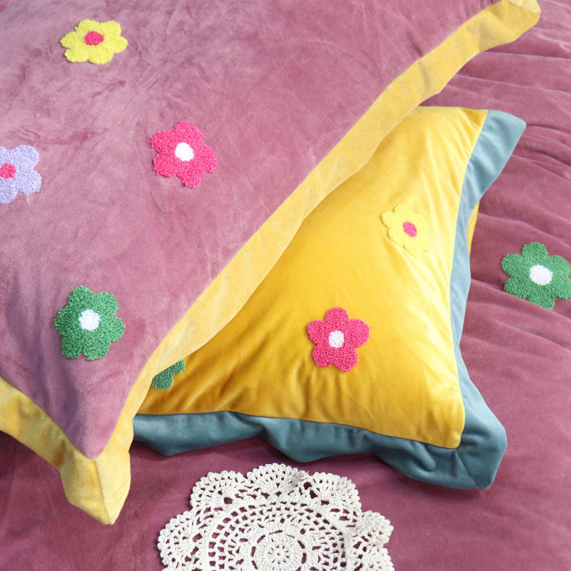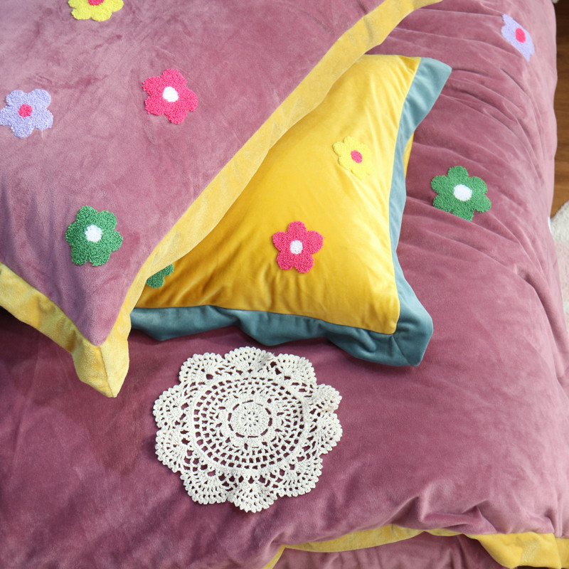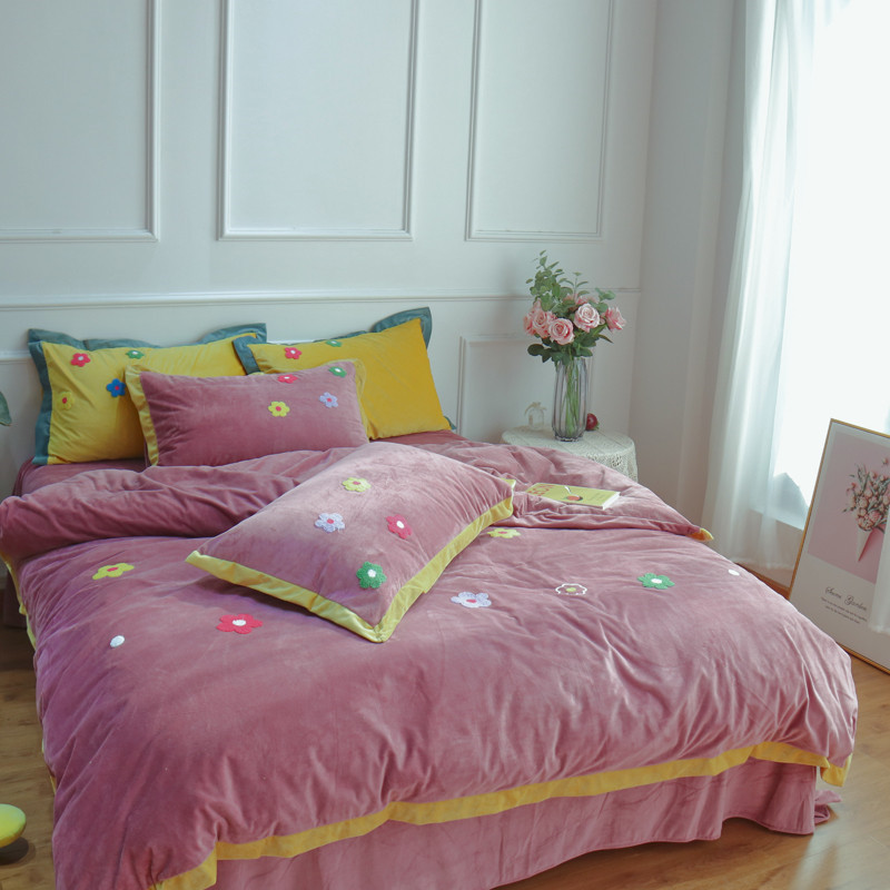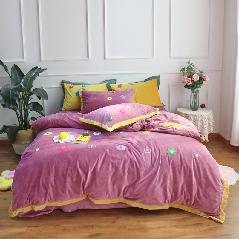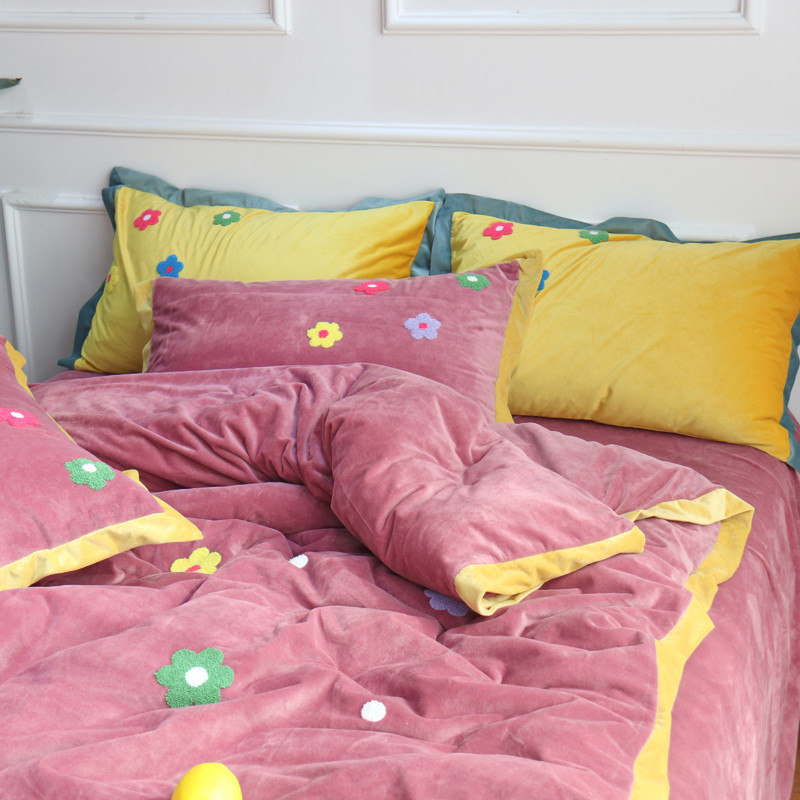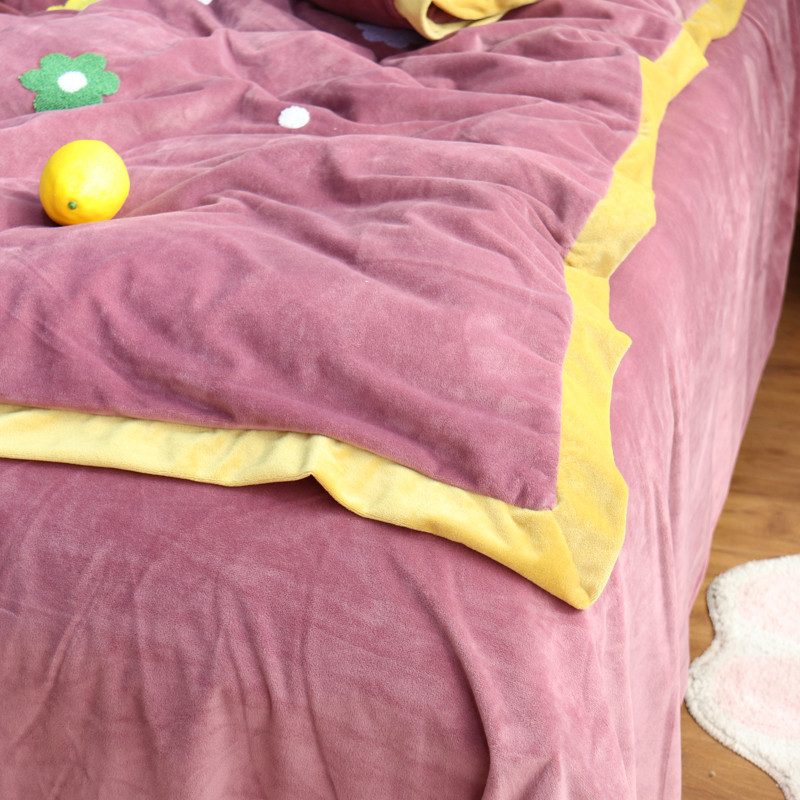润缦 2019 ins泫雅风宝宝绒四件套牛奶绒四件套 可爱花朵-豆沙色
