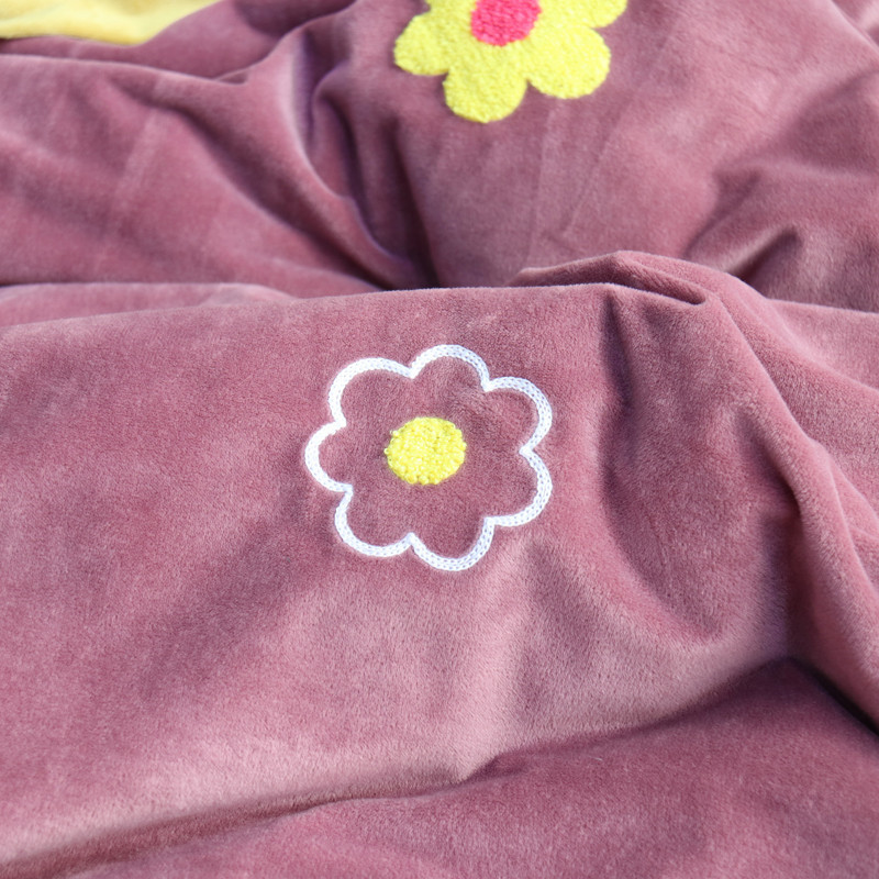 商品名称:润缦 2019 ins泫雅风宝宝绒四件套牛奶绒四件套 可爱花朵-豆沙色