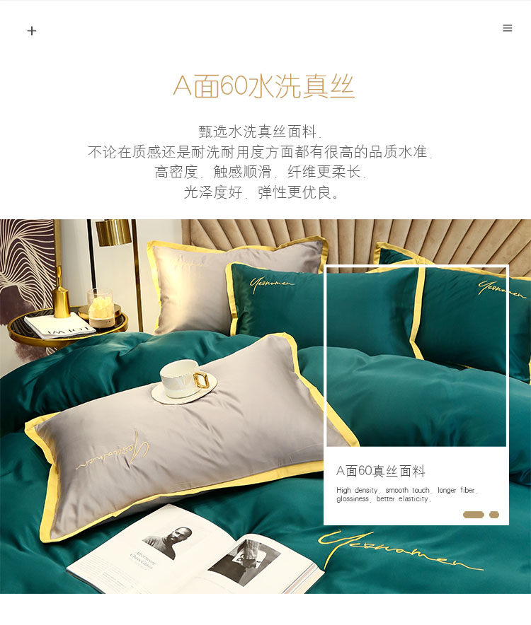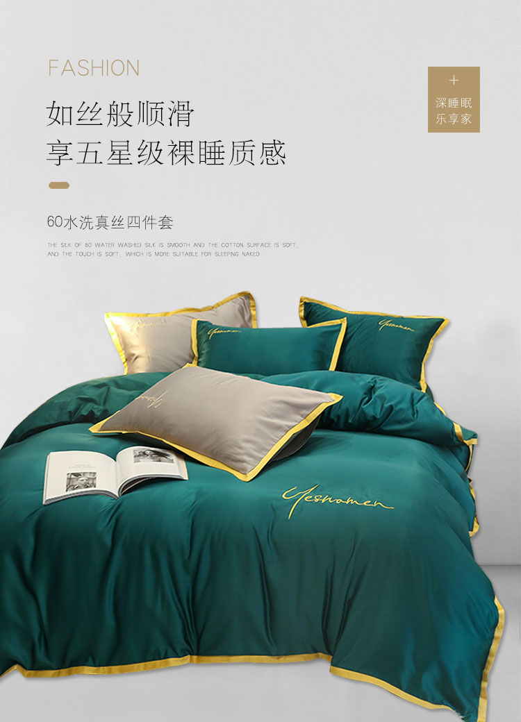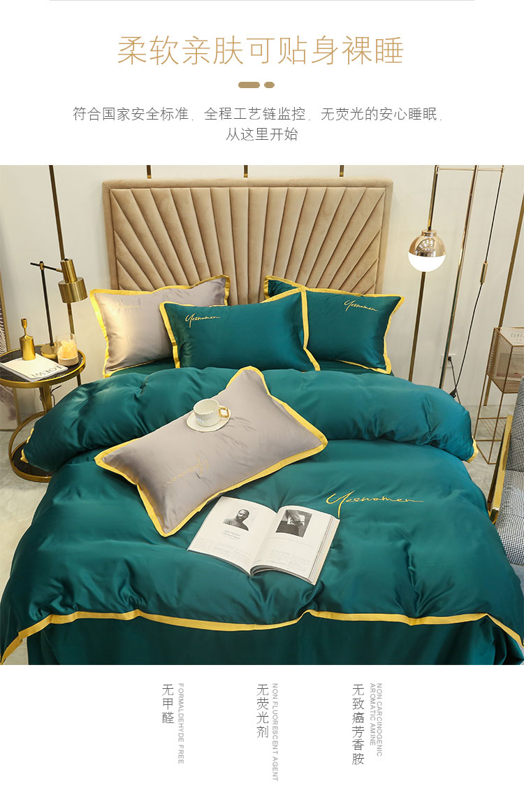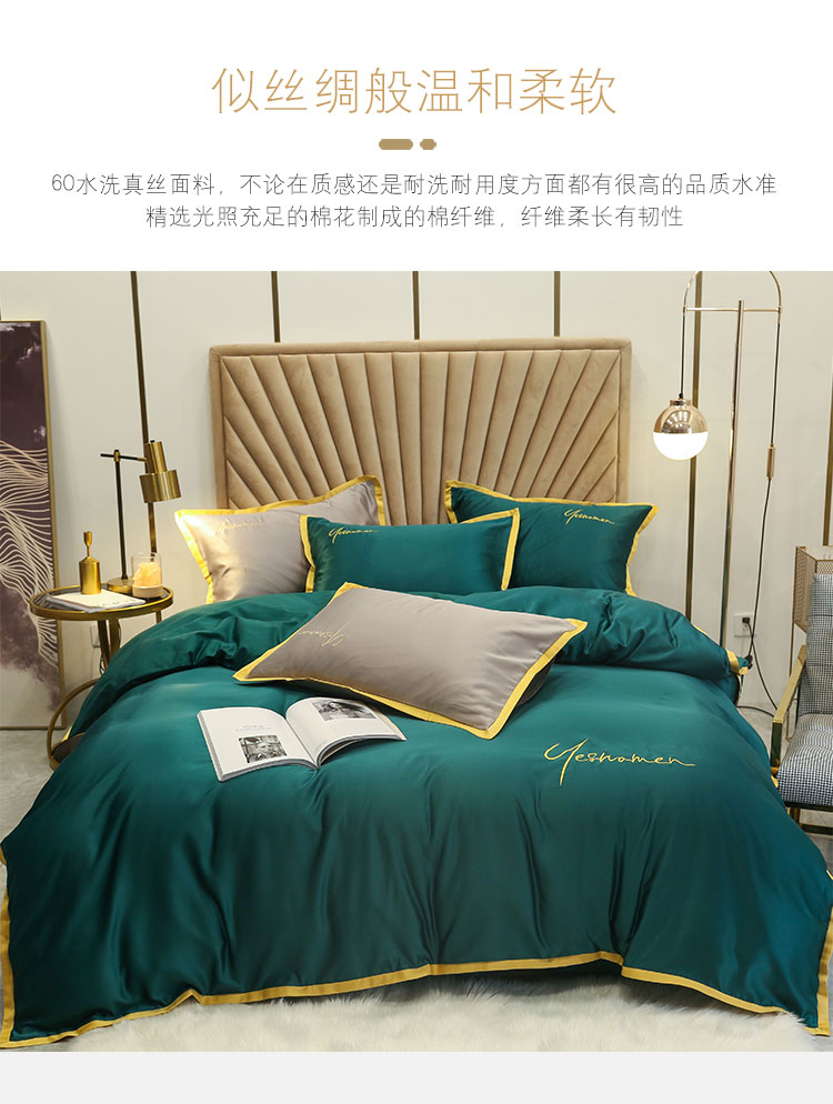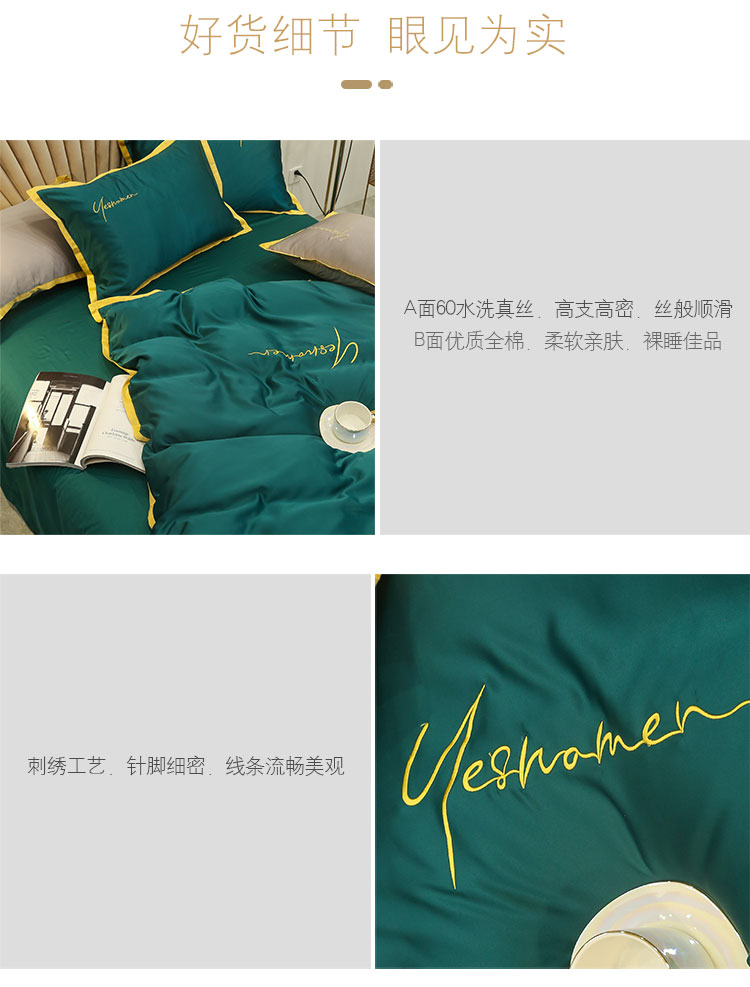 商品名称:安妮家居 2020新款全棉水洗真丝凯茜四件套新实拍 墨绿