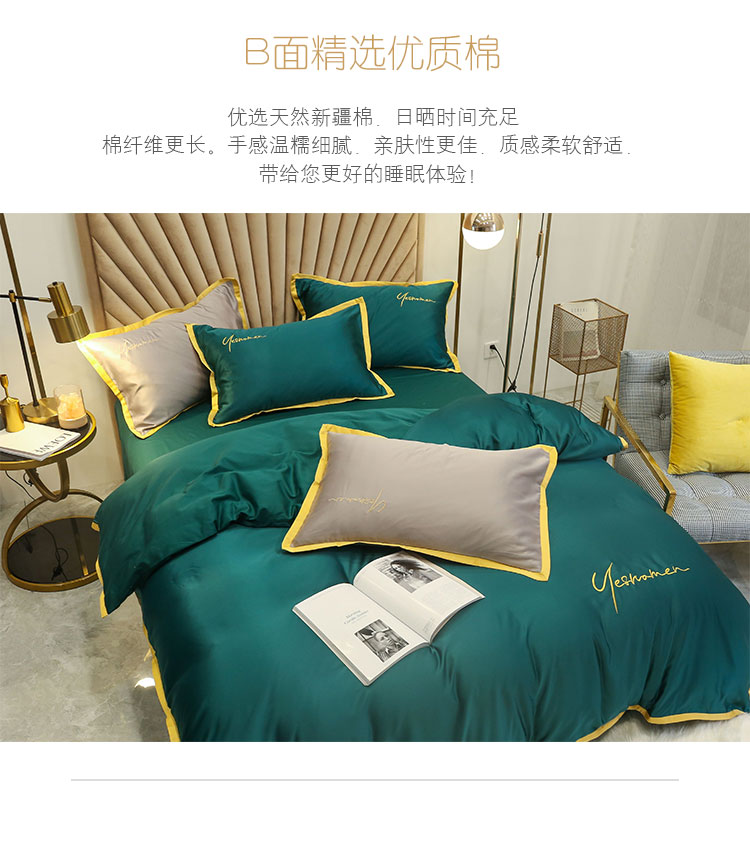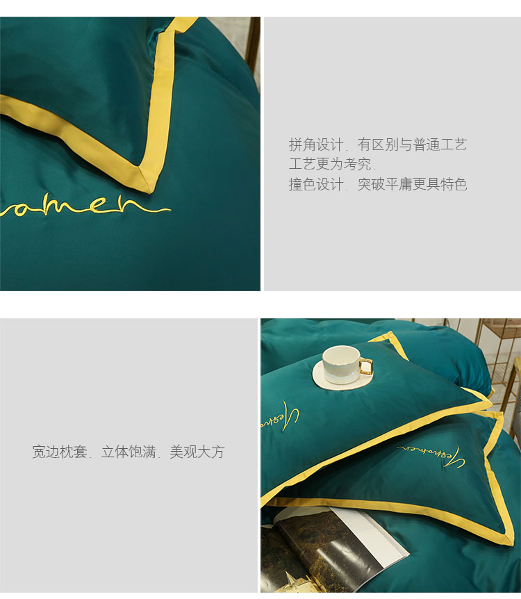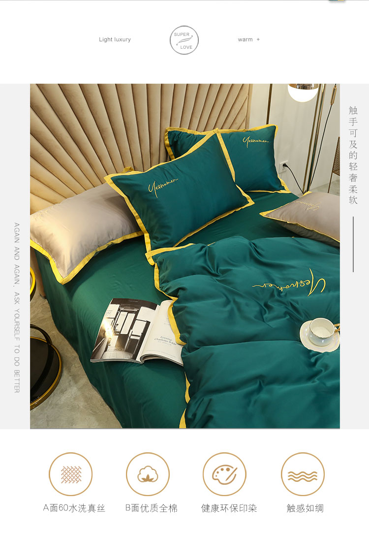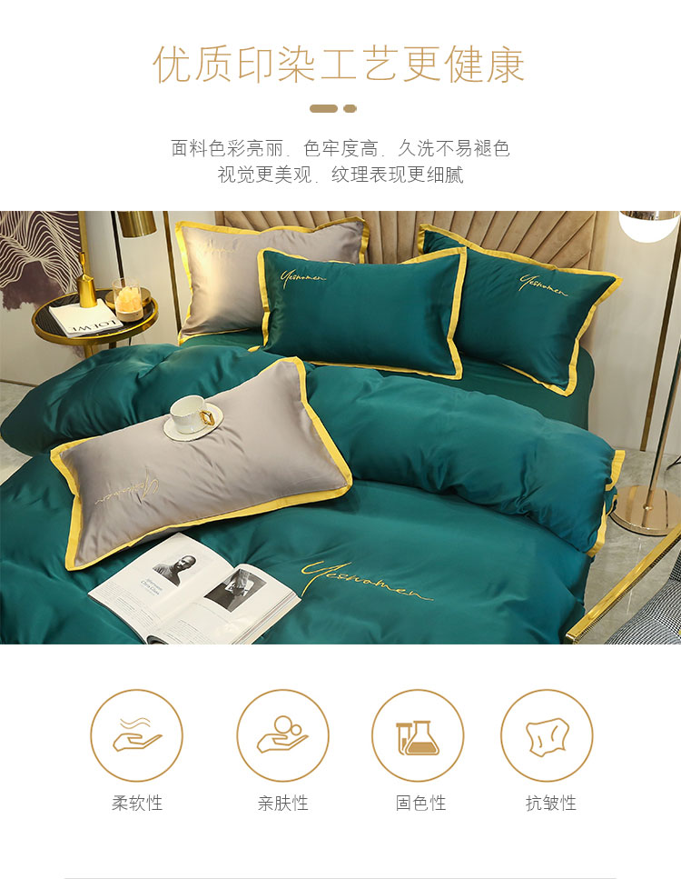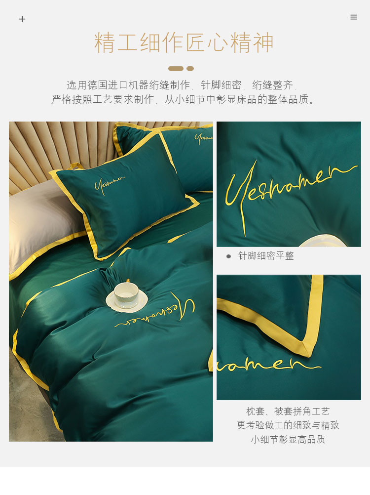 商品名称:安妮家居 2020新款全棉水洗真丝凯茜四件套新实拍 墨绿