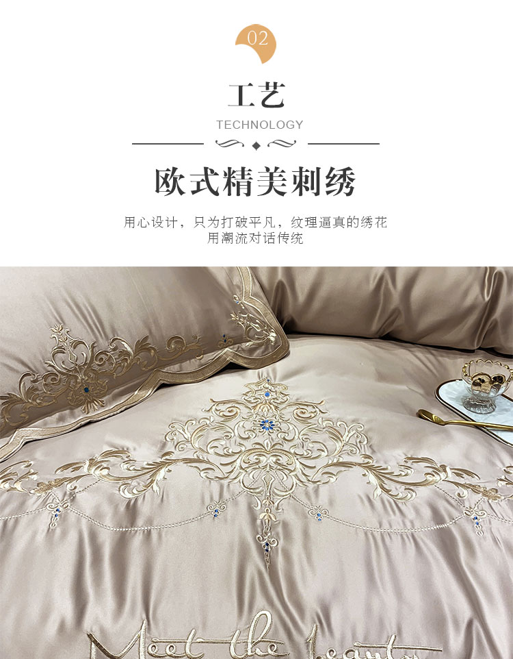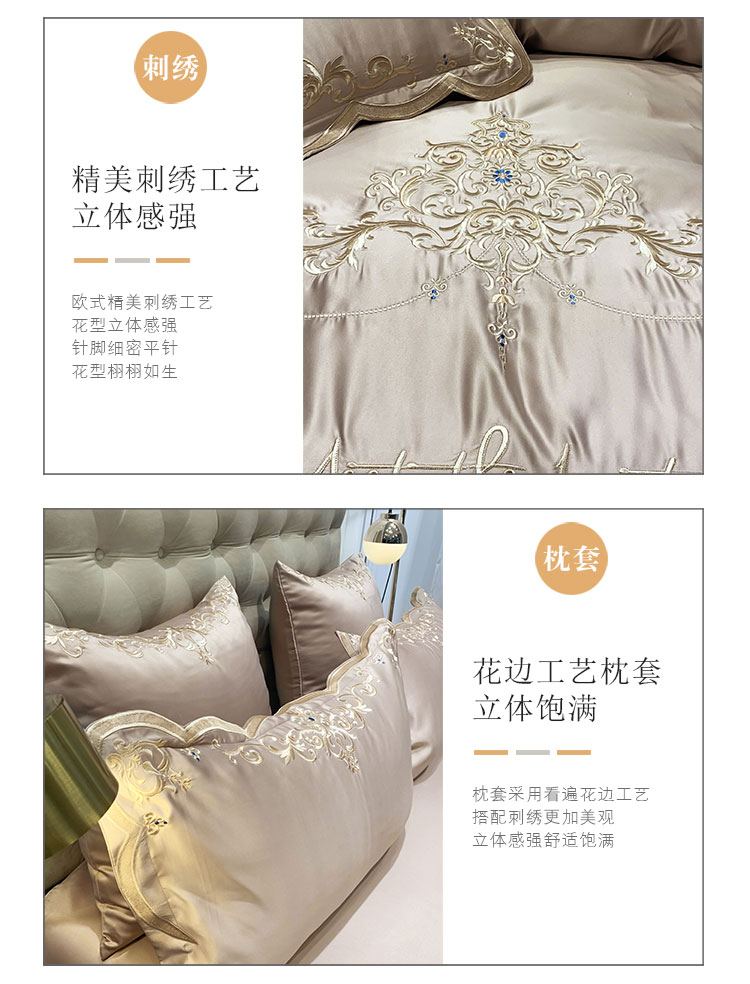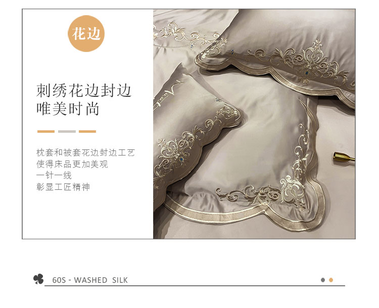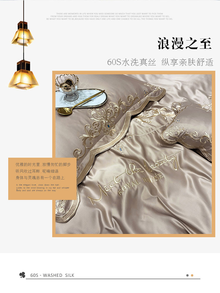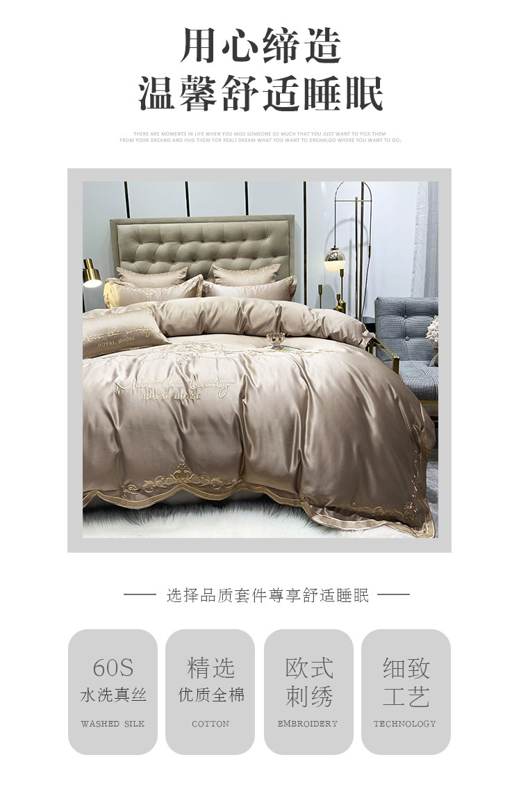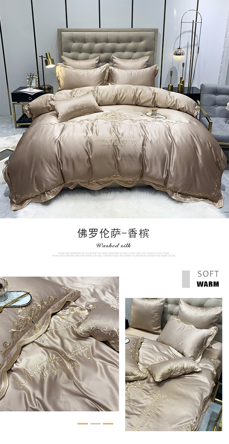 商品名称:安妮家居 2020新款60支水洗真丝绣花四件套 佛罗伦萨香槟