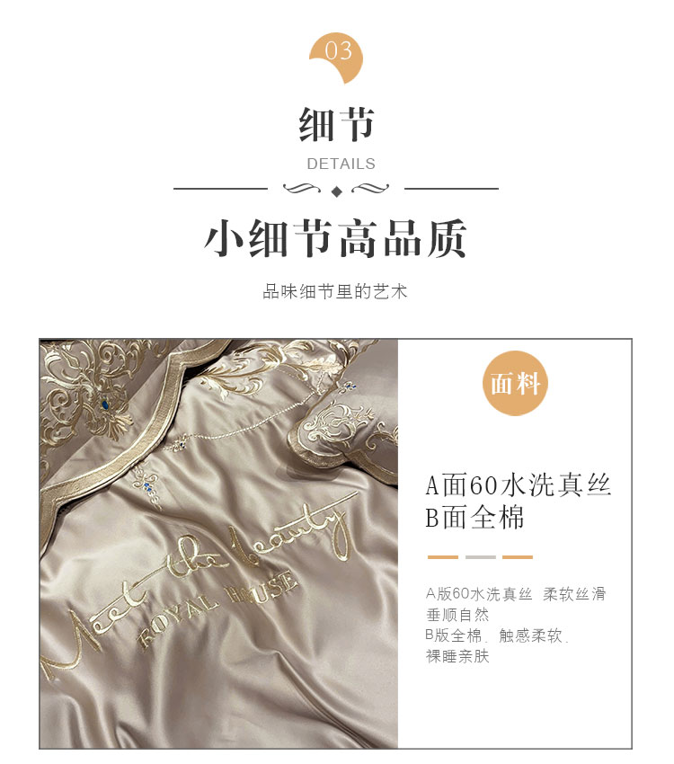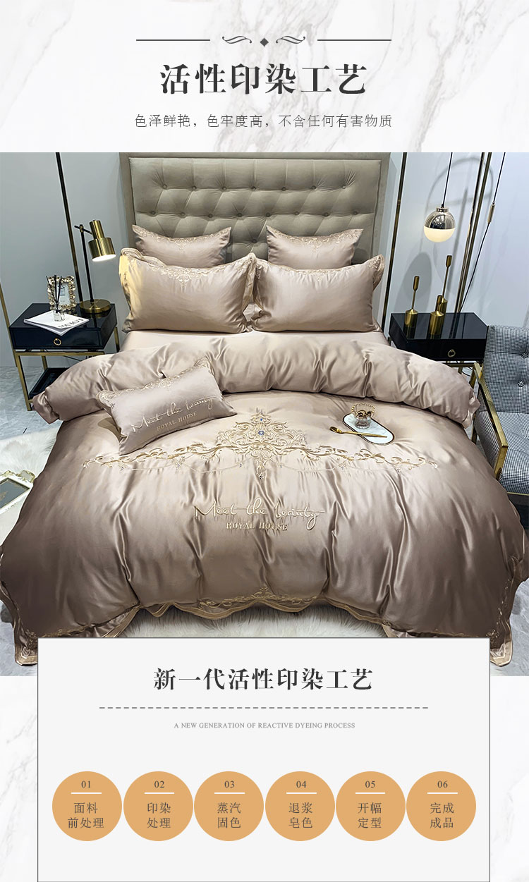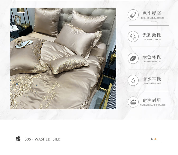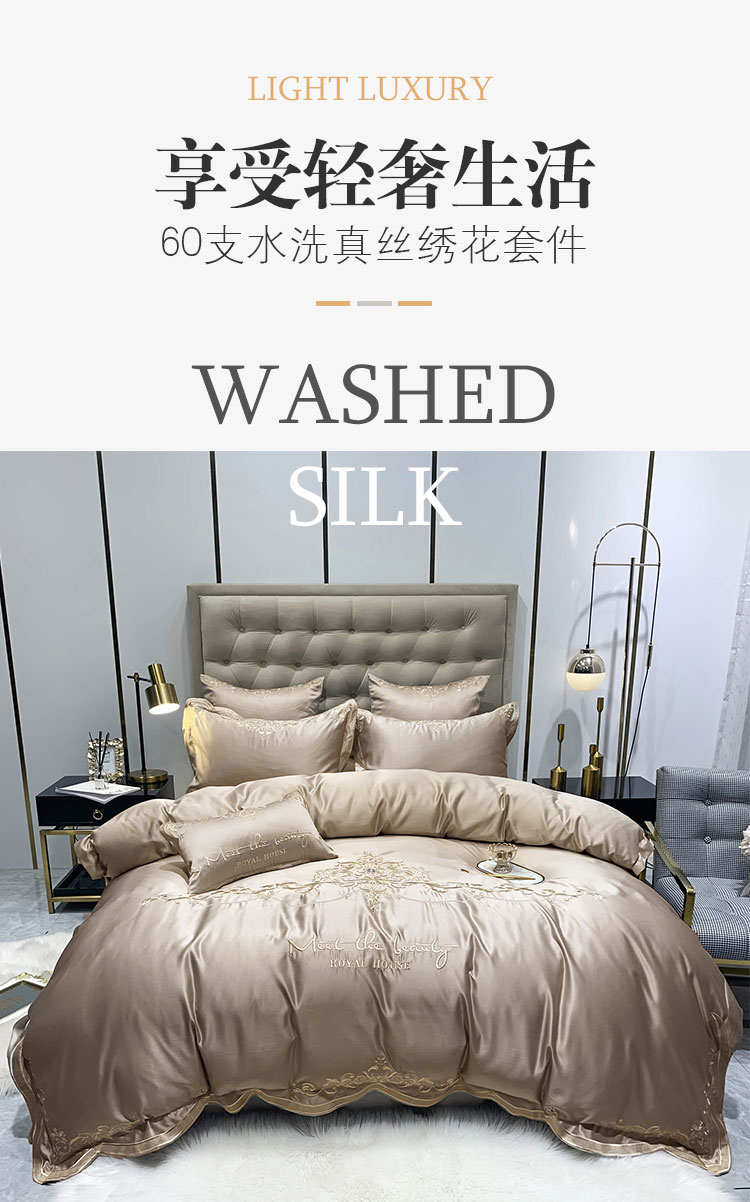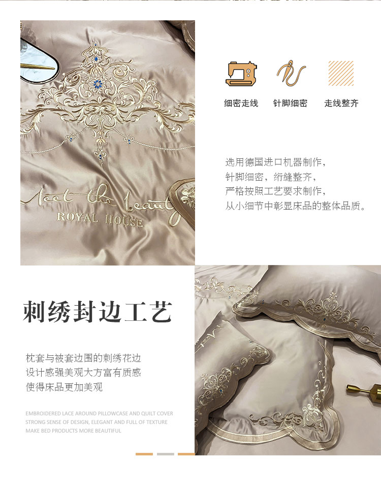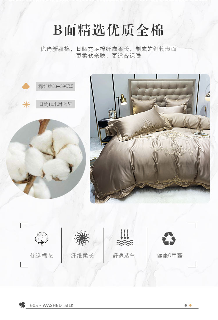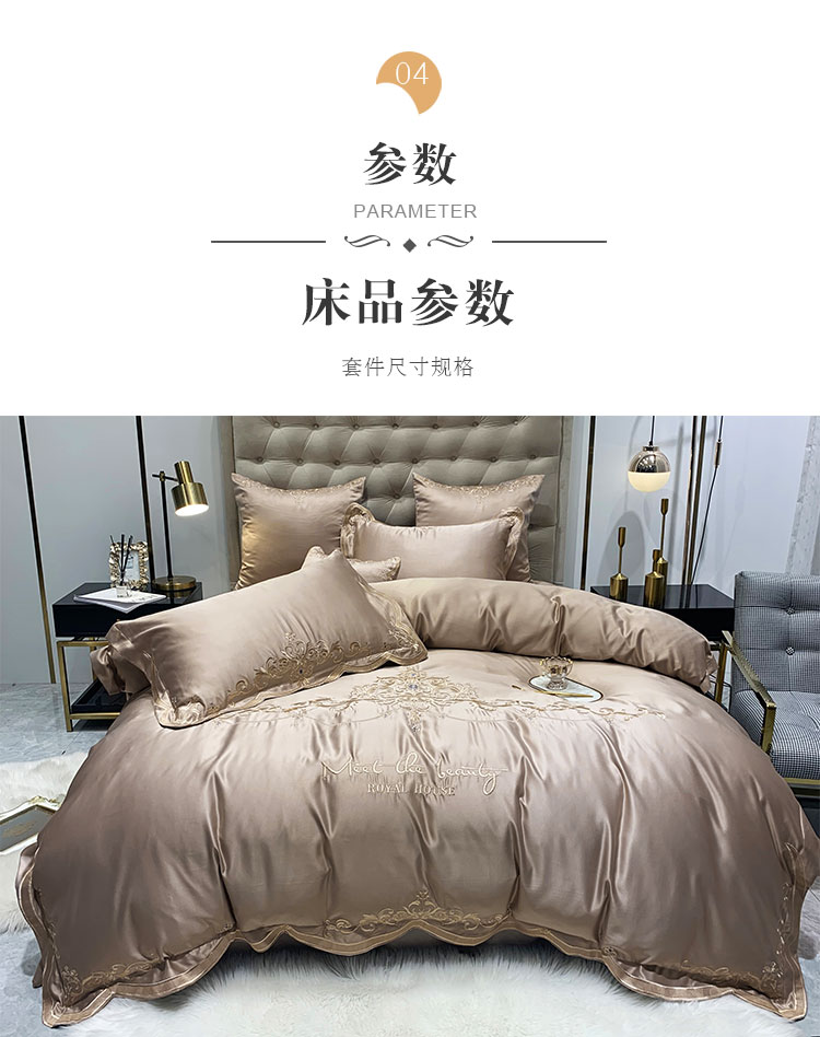 商品名称:安妮家居 2020新款60支水洗真丝绣花四件套 佛罗伦萨香槟