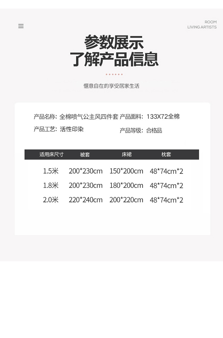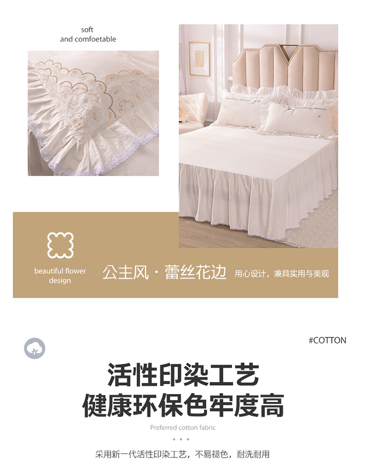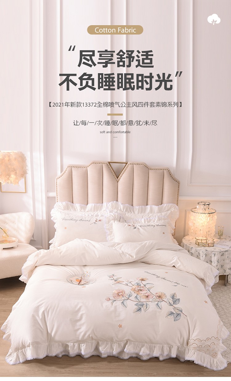 商品名称:迪欧芙 2023新款纯棉全棉喷气13372公主风素锦系列四件套白色