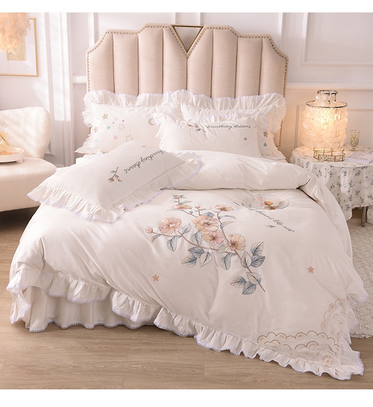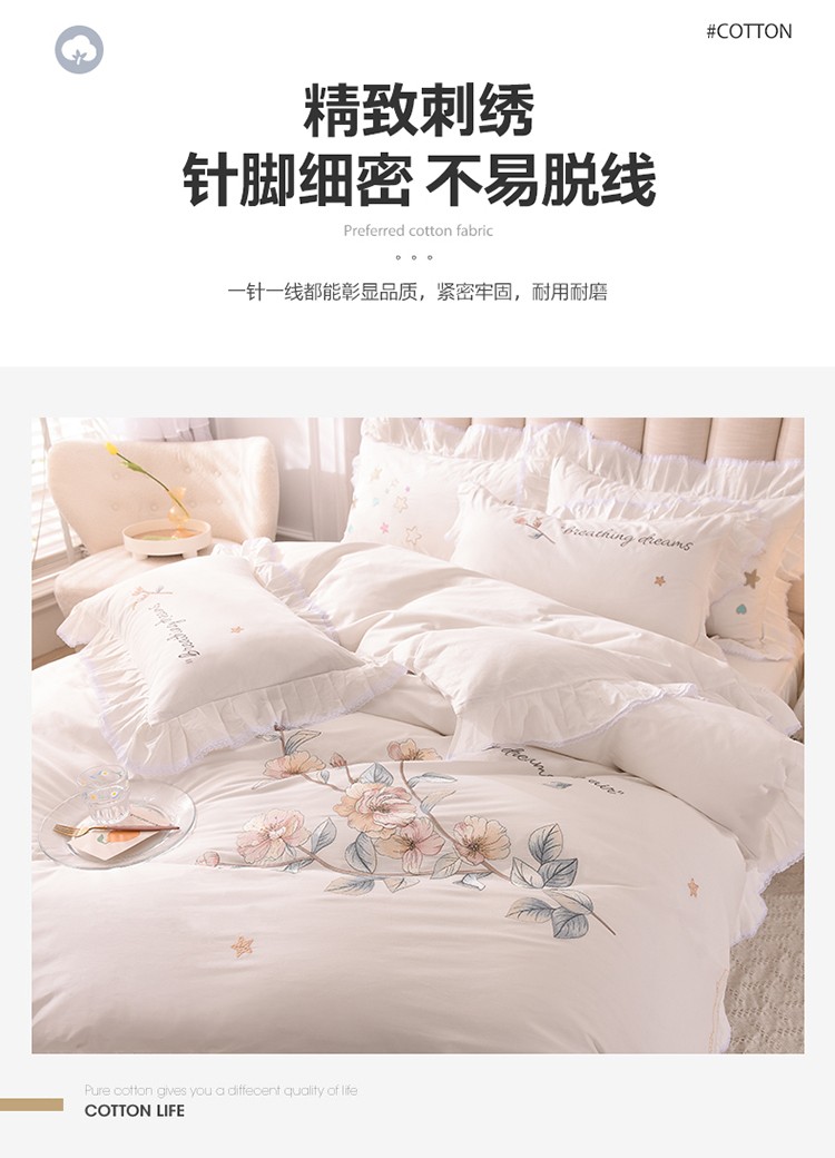 (总)迪欧芙2023新款纯棉全棉水洗棉刺绣工艺款四件套艾莉丝,艾莉丝-粉,艾莉丝-奶油白,艾莉丝-天空蓝