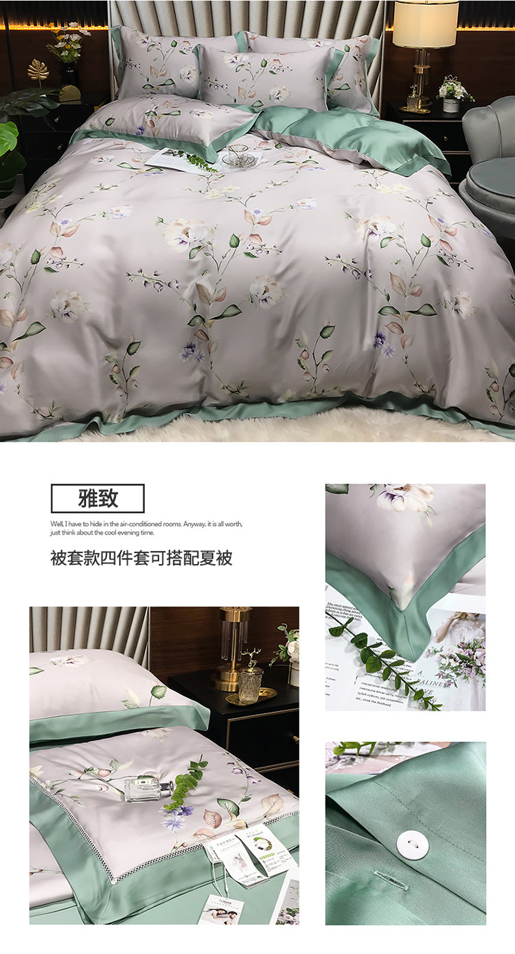 (总)娇逸家居 2025新款高克重A类数码印花牛奶绒双拼边款四件套,采薇灰,扶桑,浅影,秋灵粉,秋灵黄,秋灵绿,舜华粉,采薇米,舜华绿,仙客,栩蝶,璎珞,玉树,芸芙