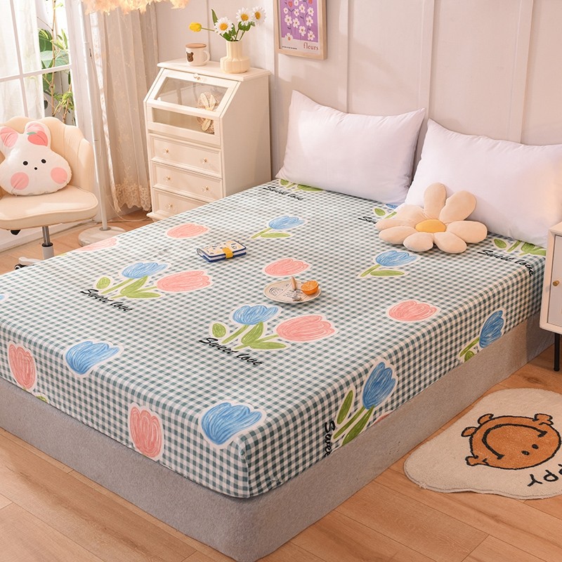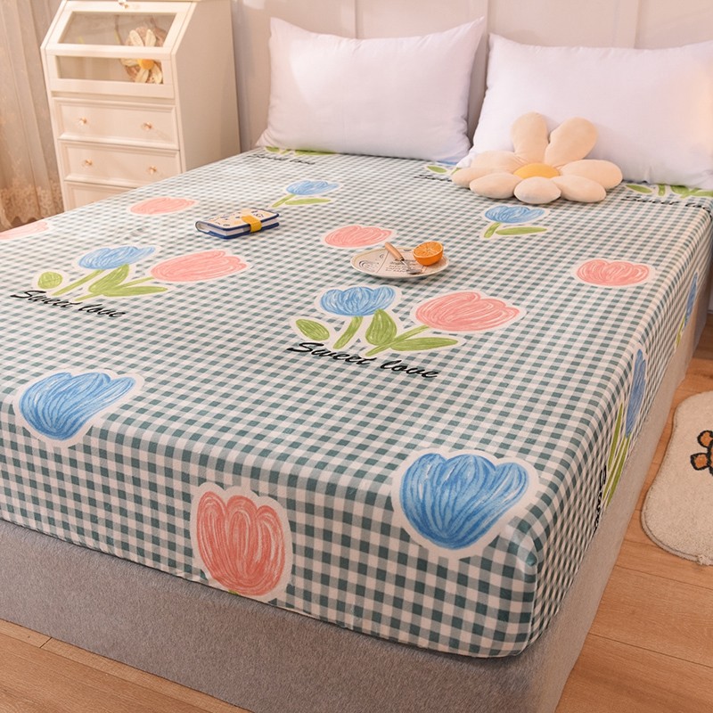 甜之梦 2025新款水晶绒单品床笠 格子三瓣花