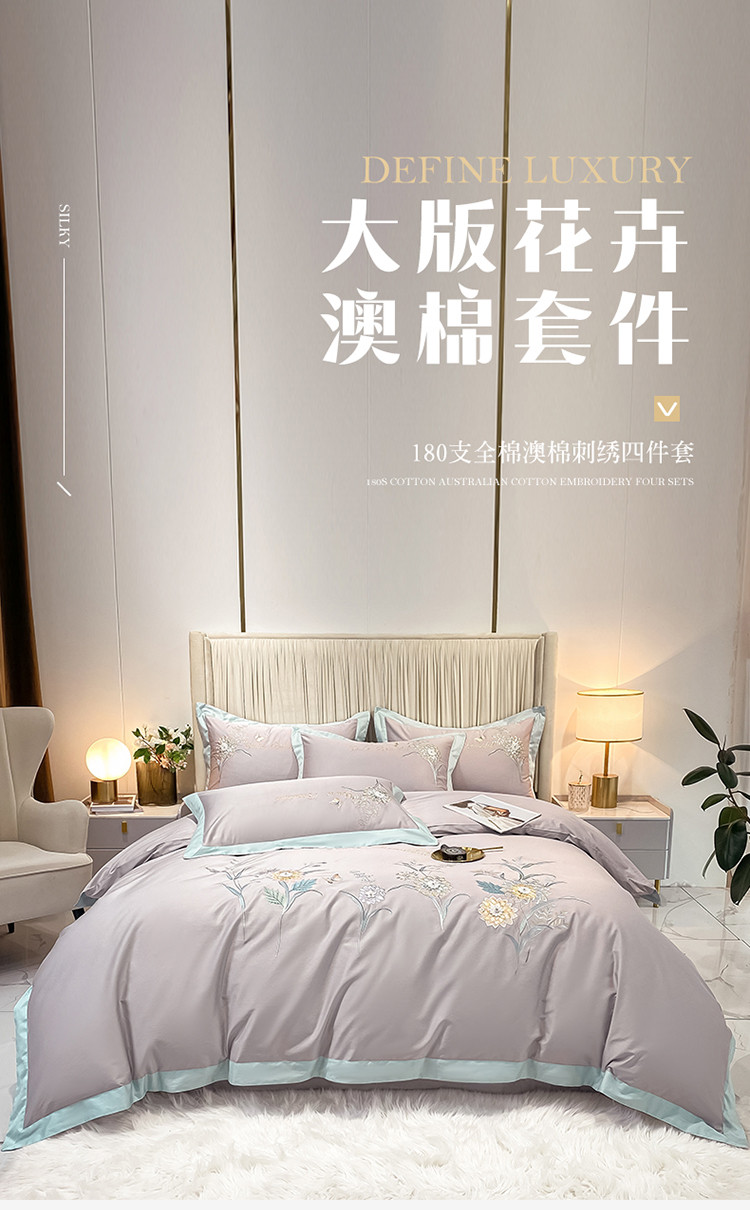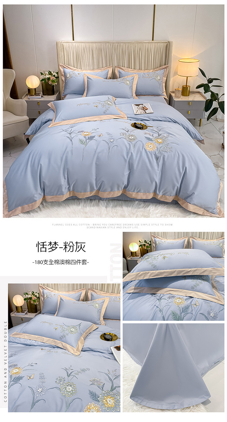 (总)品家居2021新款贝拉花园180支全棉澳棉刺绣四件套,贝拉花园-粉,贝拉花园-蓝