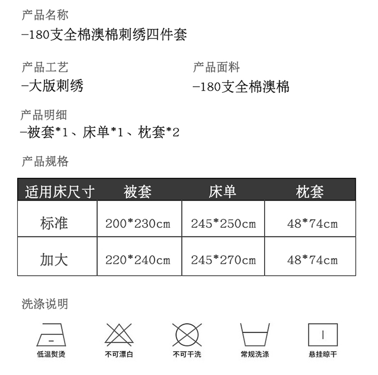 商品名称:(总)品家居 2021新款180S全棉澳棉刺绣四件套-恬梦