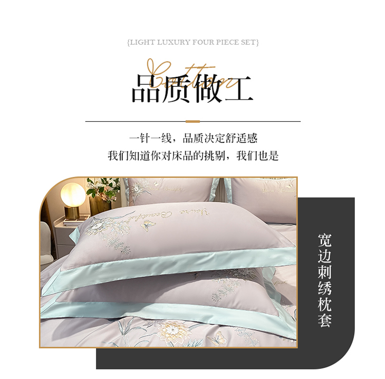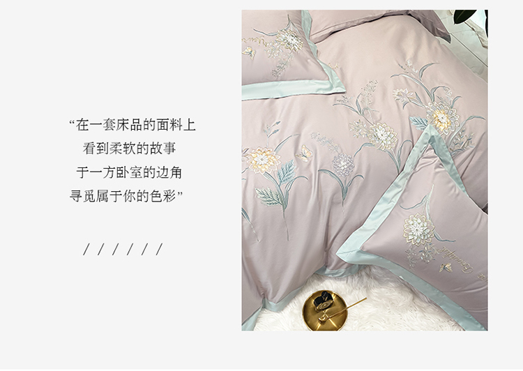 (总)品家居 2025新款180支长绒棉绣花四件套露珠,露珠-香槟色,露珠-紫灰