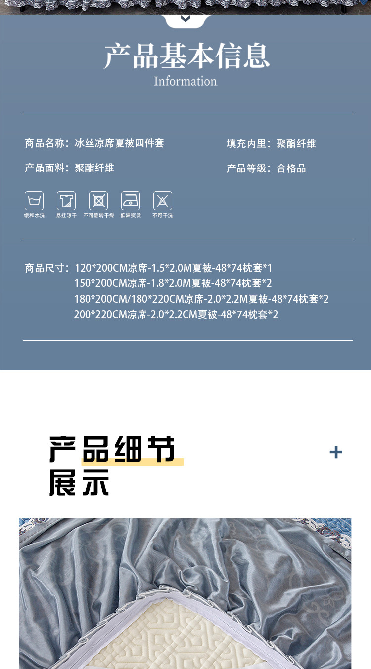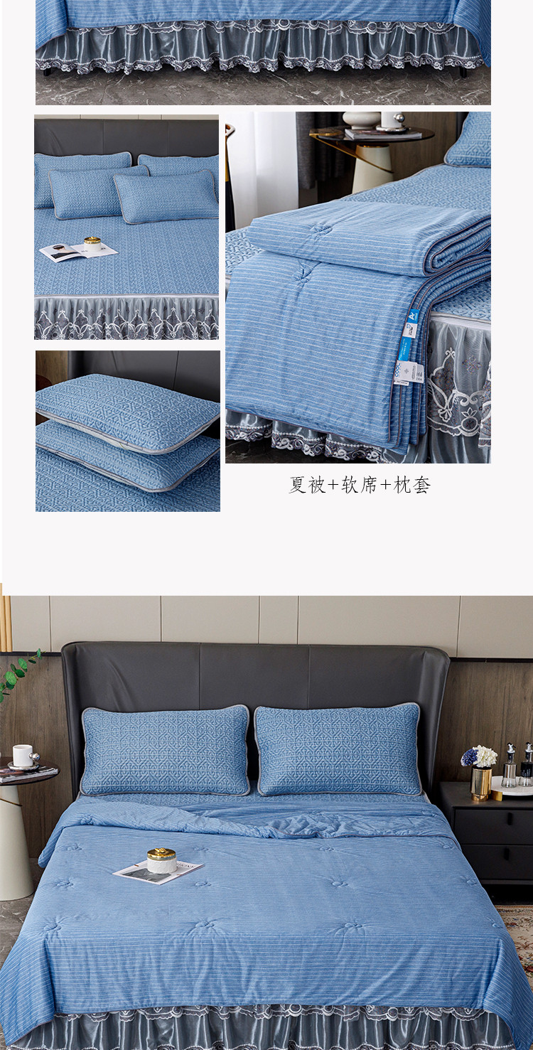 商品名称:(总)纽缦 2022新款凉感丝乳胶凉席纯色夏被床裙四件套