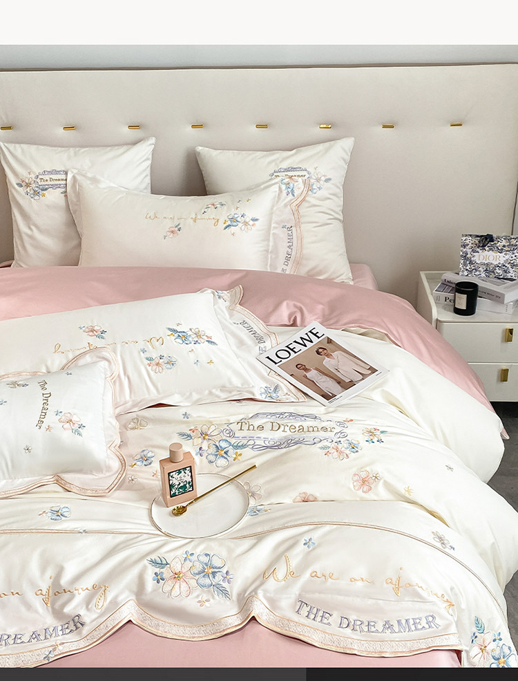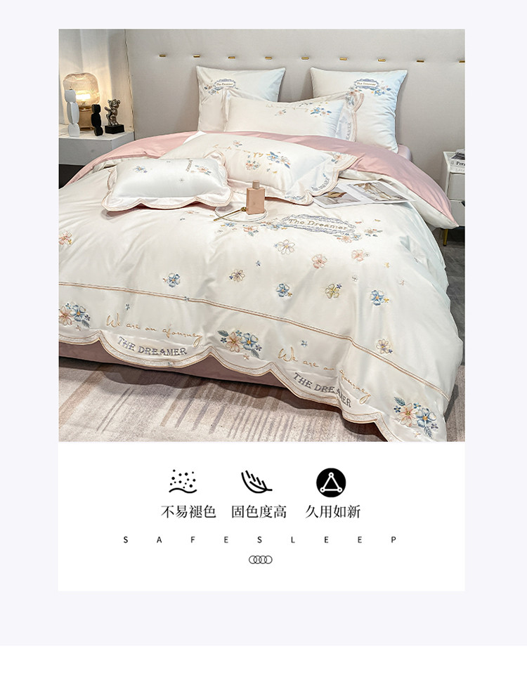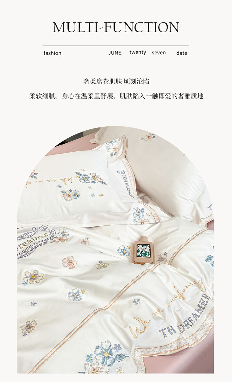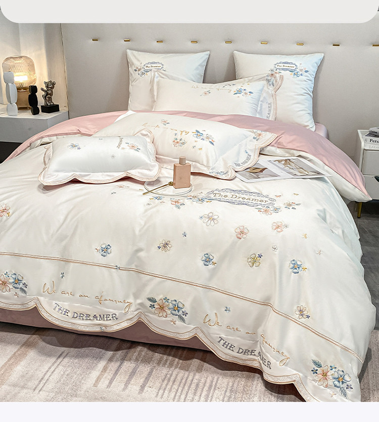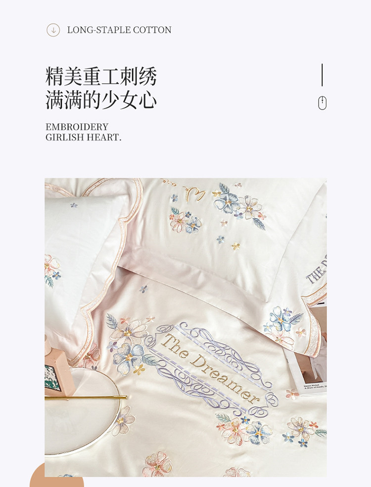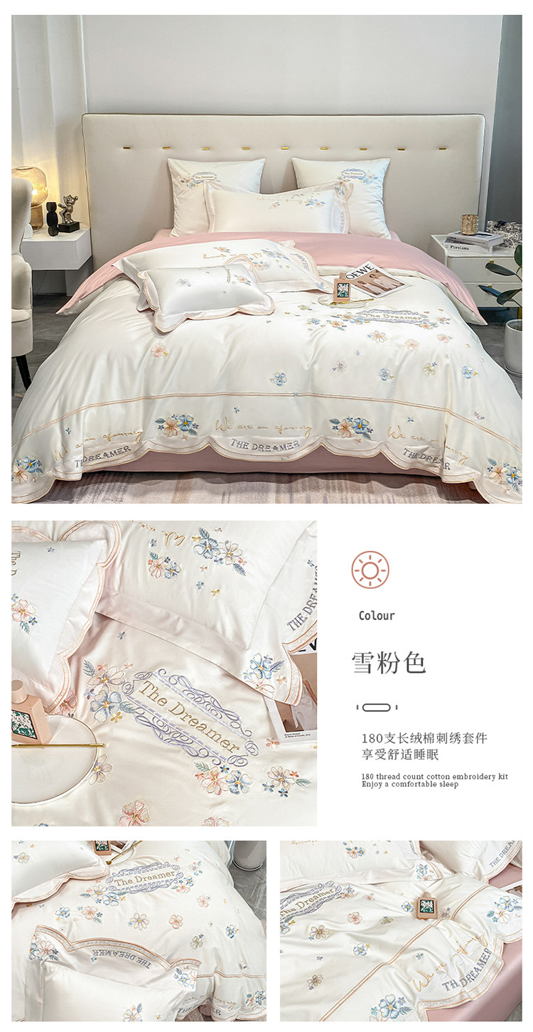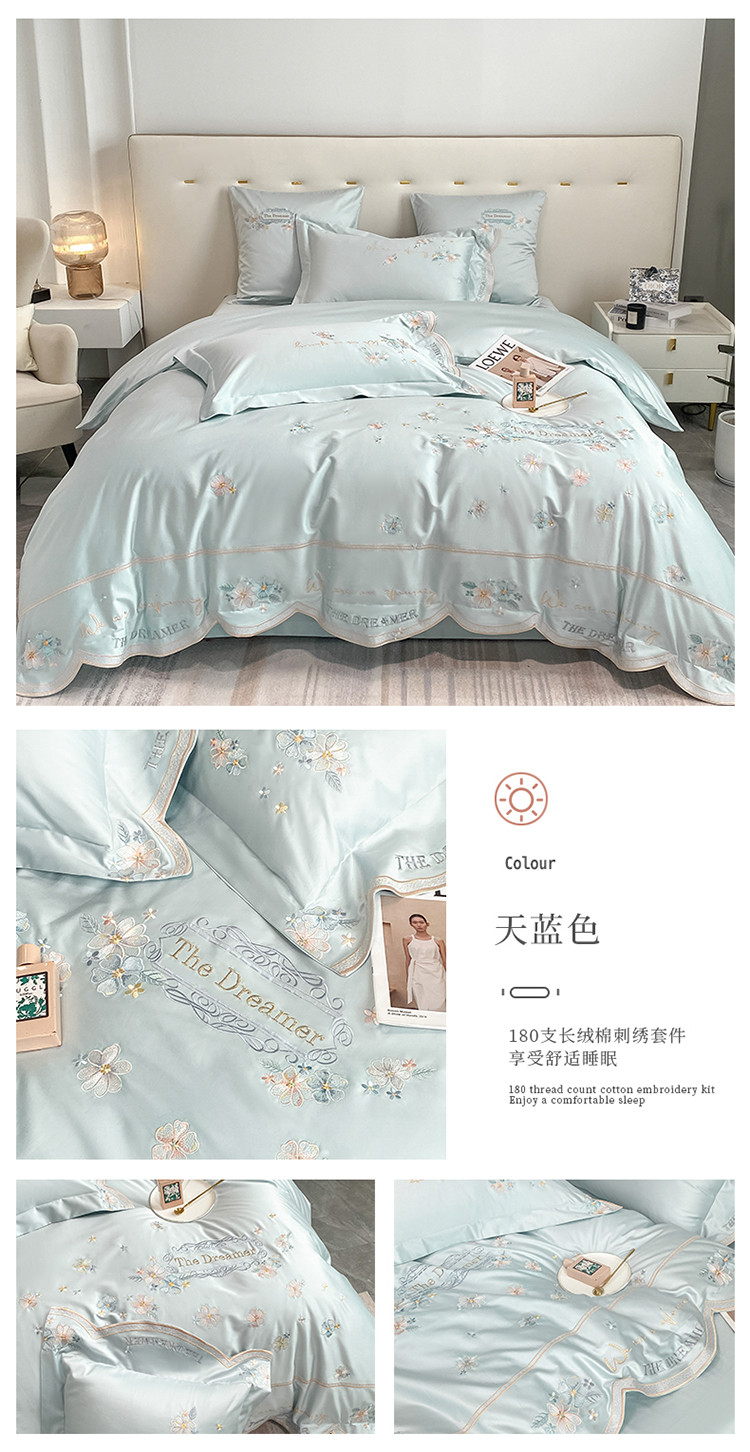 (总)品家居2021新款贝拉花园180支全棉澳棉刺绣四件套,贝拉花园-粉,贝拉花园-蓝