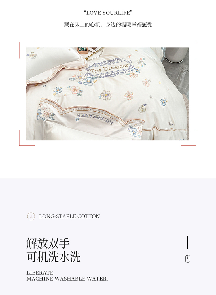 商品名称:(总)品家居 2025新款180支长绒棉四件套微雨花涧