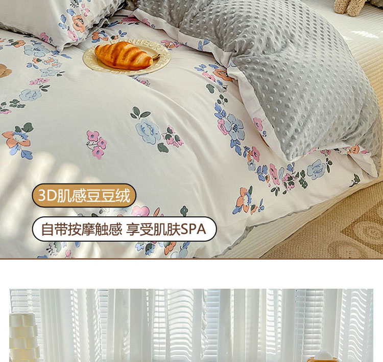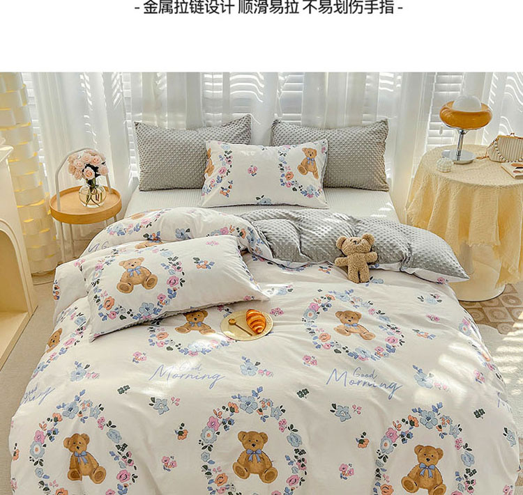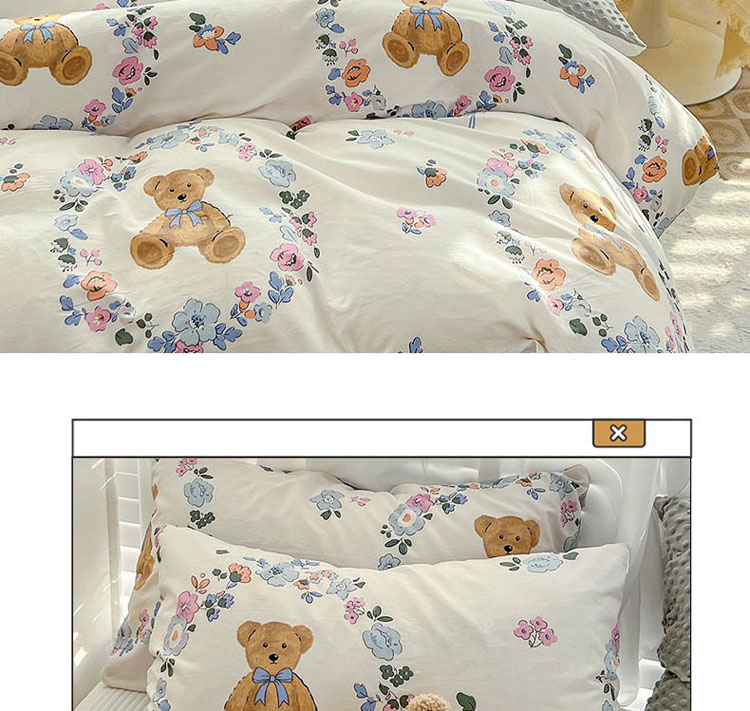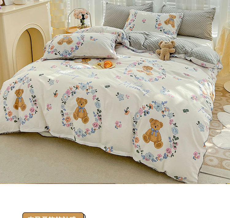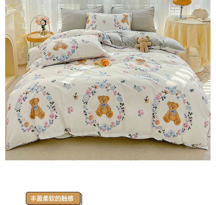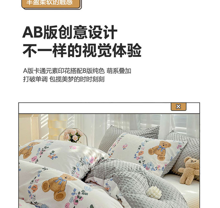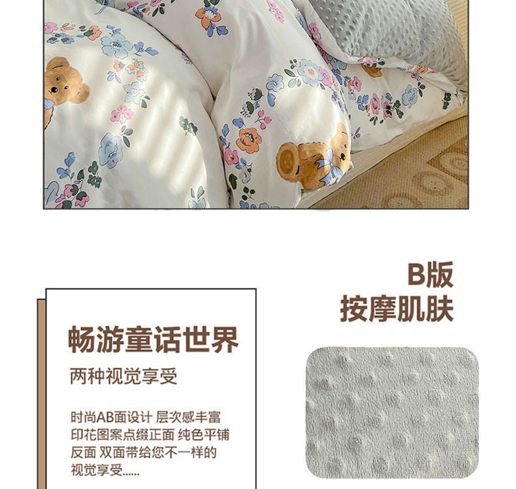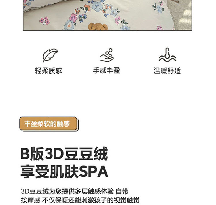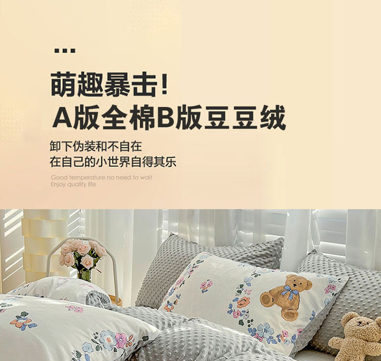商品名称:梦家居 2023新款全棉加安抚豆豆绒被套两件套三件套 花环小熊