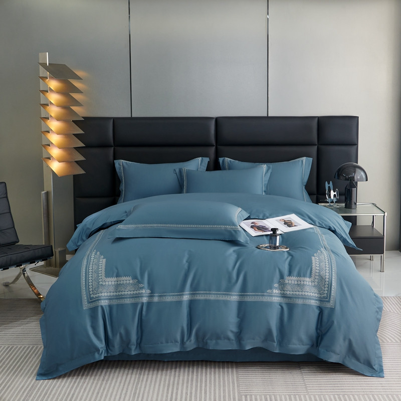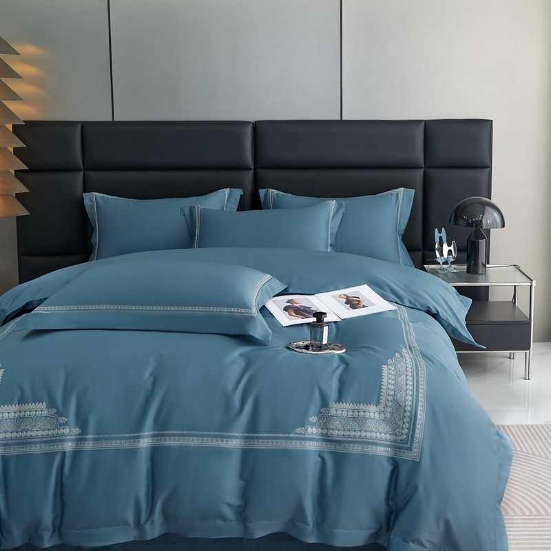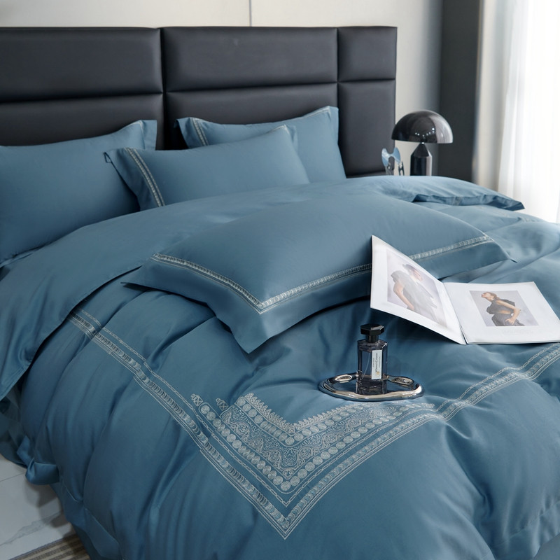 榻尚家居 2023新款格瑞斯系列100贡缎长绒棉四件套工艺款四件套 格瑞斯蓝