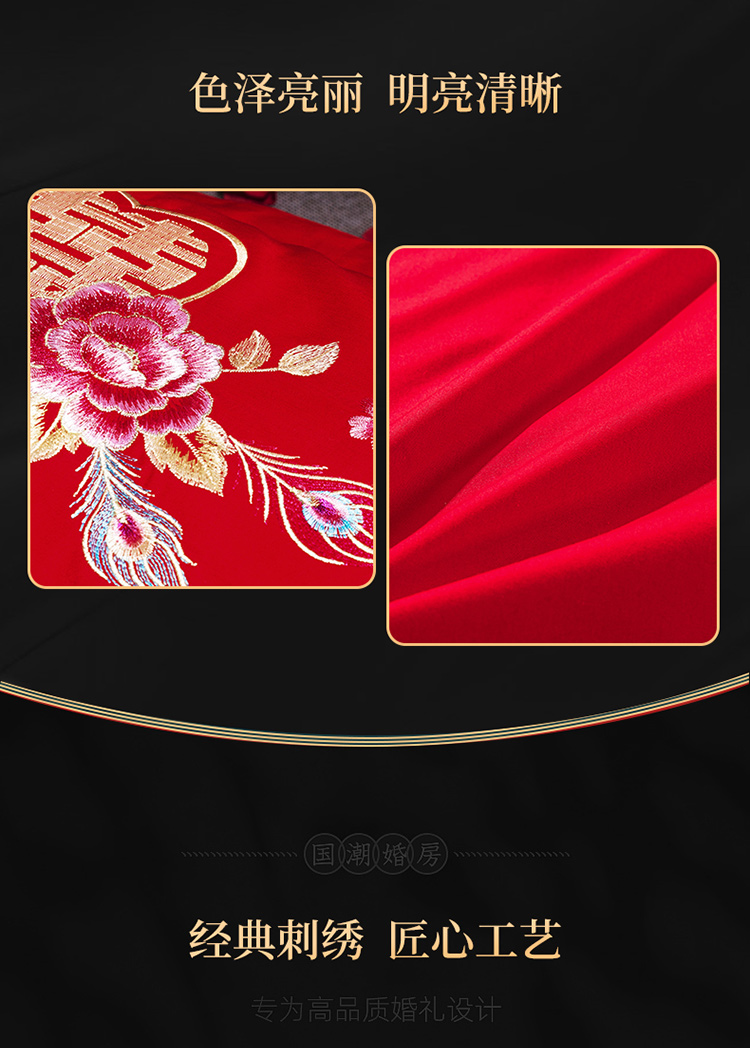 (总)慕她婚庆2025年新款婚庆四件套大红色刺绣结婚床上用品,恩爱龙凤,龙凤欢腾,秦晋龙凤,喜韵龙凤,幸福龙凤,幸福永驻,雅韵龙凤,国色牡丹,吉祥如意,龙凤喝彩