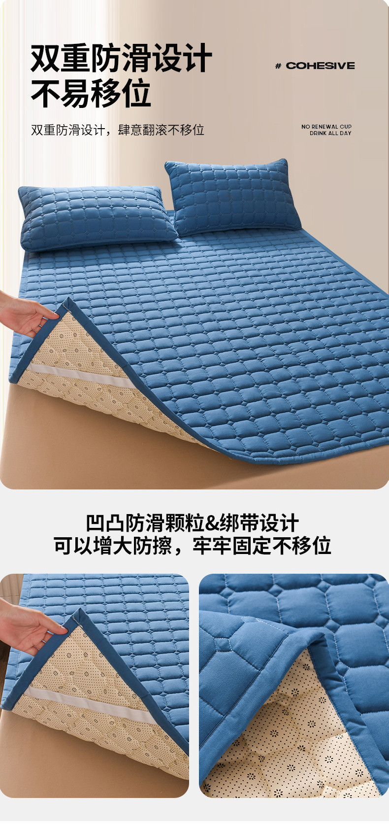 商品名称:恋绒 2023新款A类升级款防水隔尿床护垫床褥子床垫 防水款-远山蓝