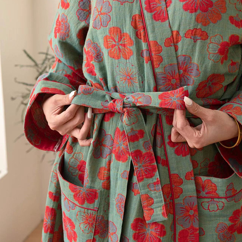 商品名称:双层纱家居 2023新款双层纱家居服睡袍 绿色