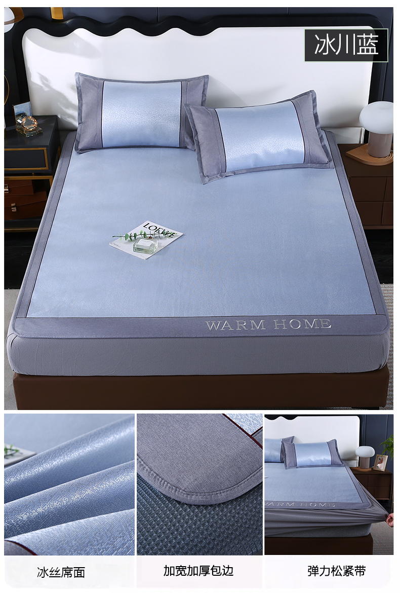 商品名称:莱轩席业 2024新款A类抗菌刺绣冰丝席床笠款 冰川蓝