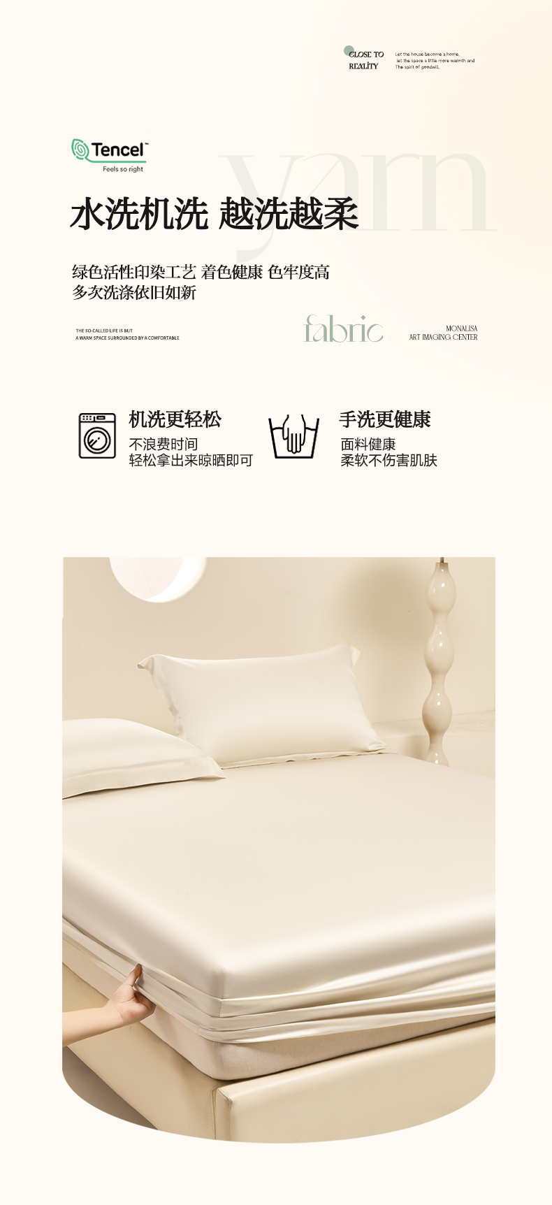 商品名称:涵宸 2024新款兰精天丝棉纯色单品-床笠 床笠-象牙白