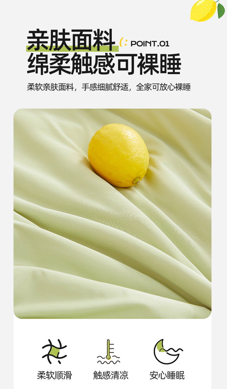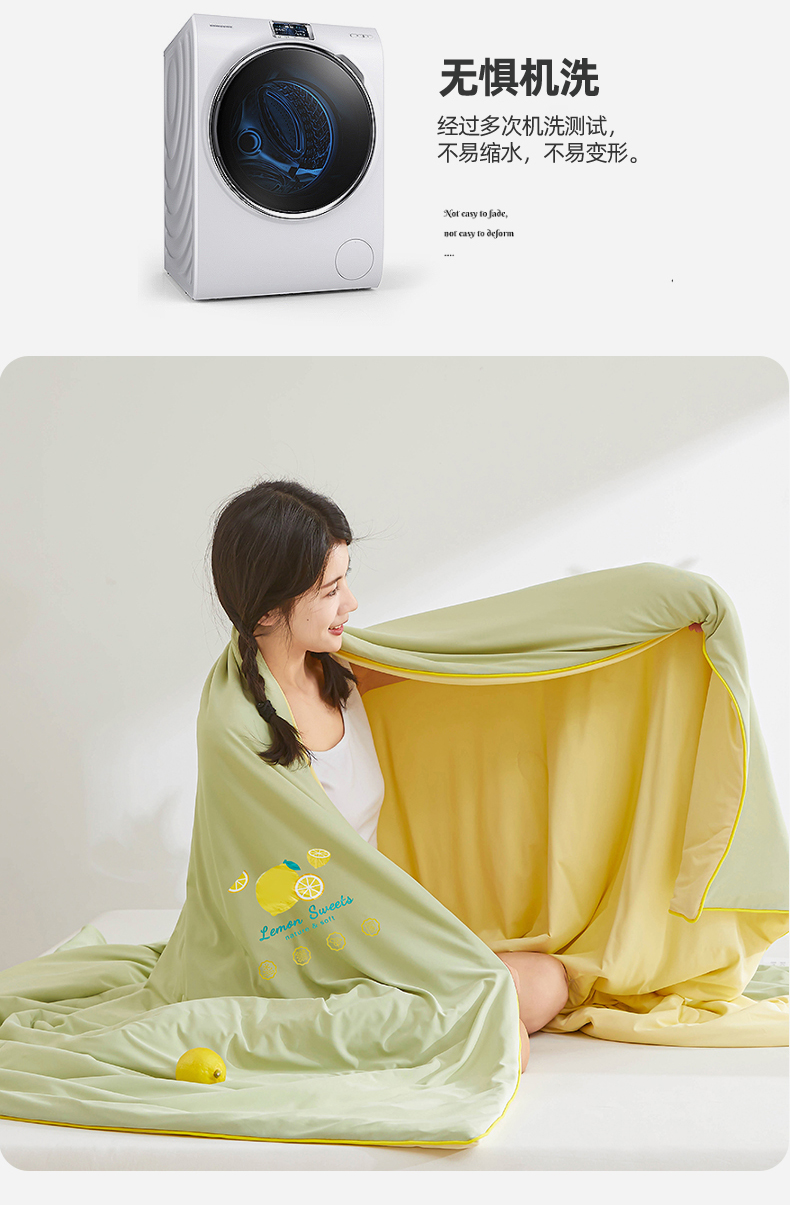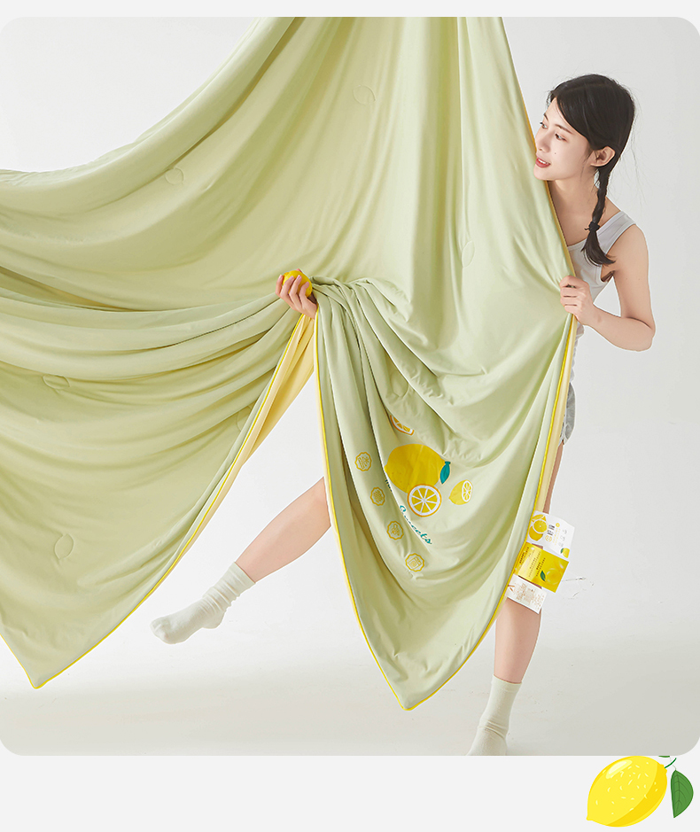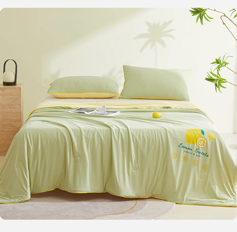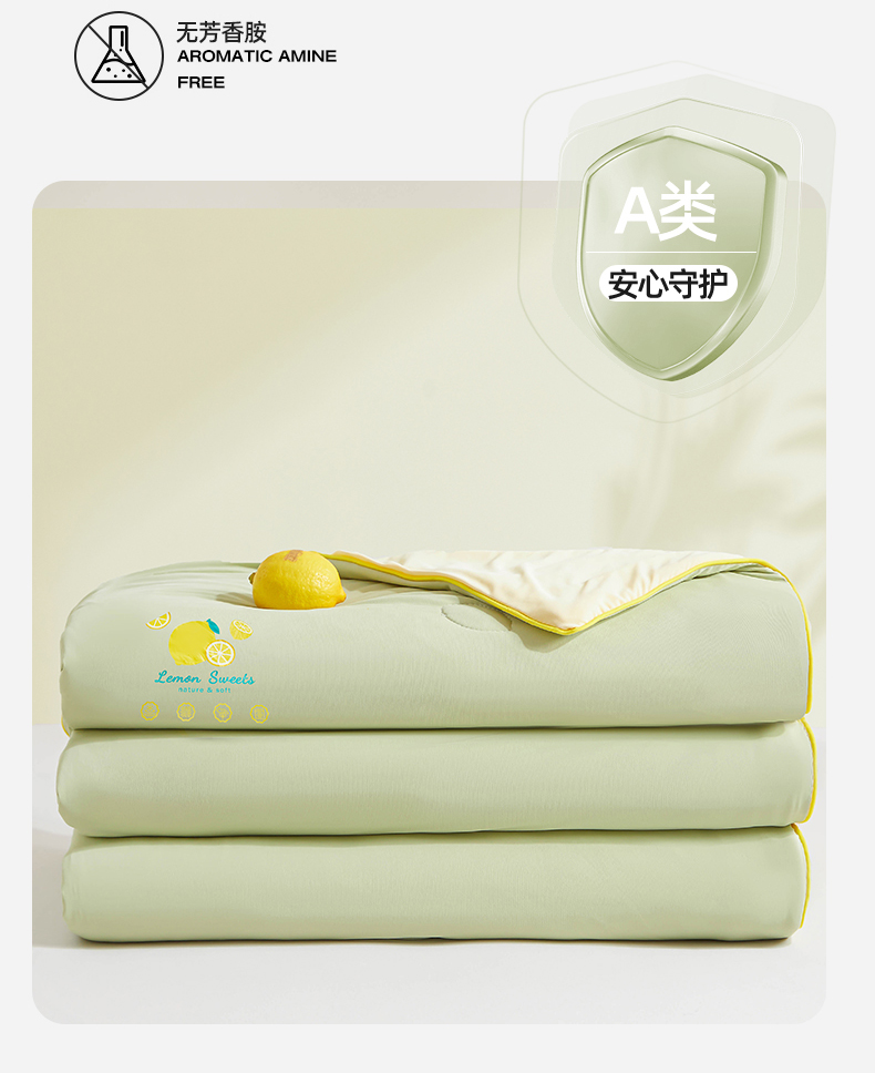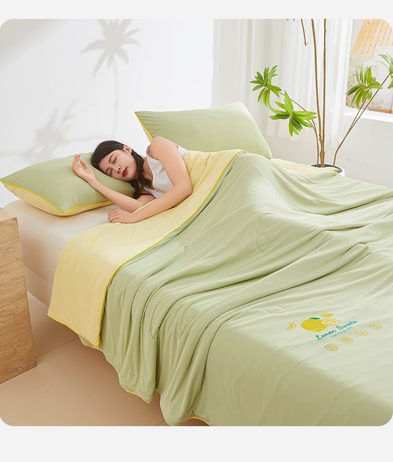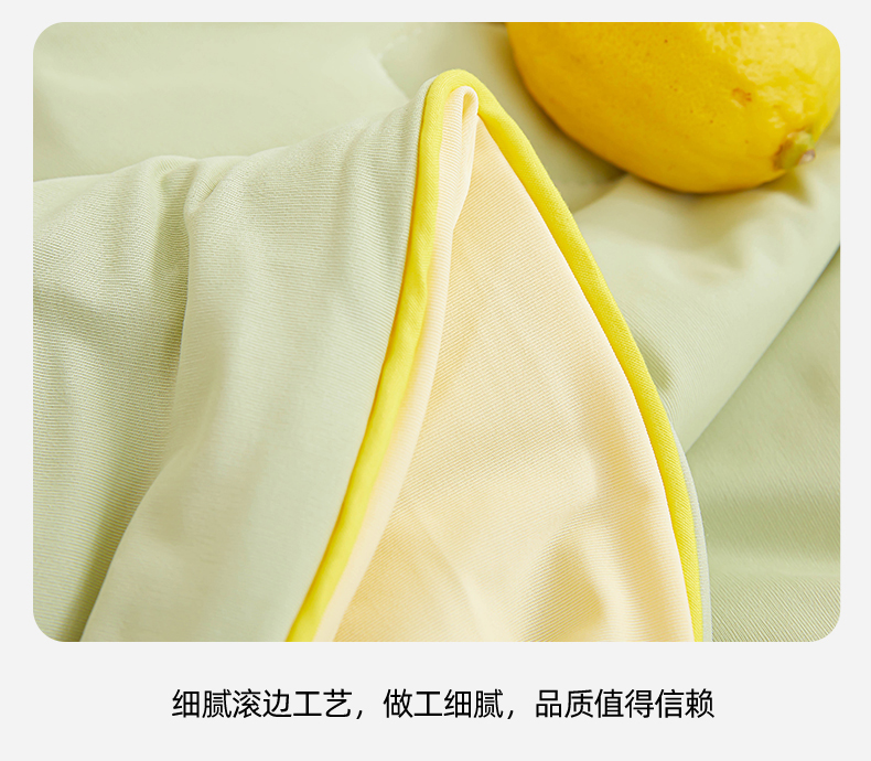 商品名称:恒畅 2024新款A类凉感丝纯色双拼柠檬夏被 柠檬-森绿+淡黄