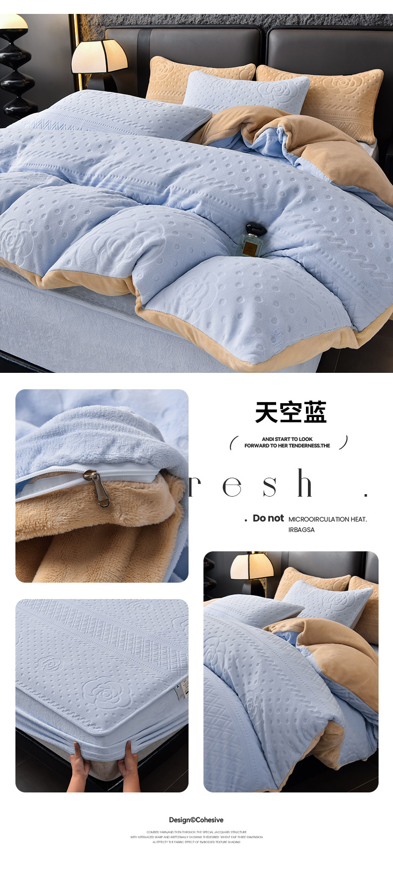 商品名称:好眠好梦家纺 2024新款阳光玫瑰牛奶绒复合床笠四件套 阳光玫瑰-天空蓝
